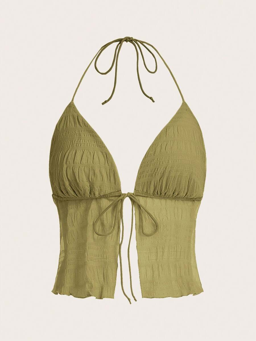 SHEIN ICON Solid Tie Backless Halter Top