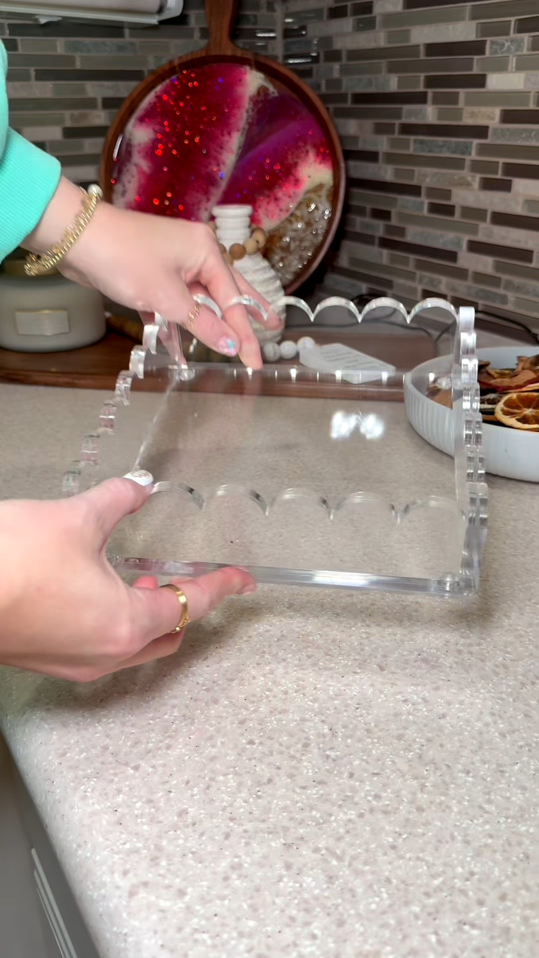 8 x 8 Scalloped Acrylic Tray with Magnetic Mat – Clear Photo Display Tray & Jewelry Organizer, ... | Amazon (US)