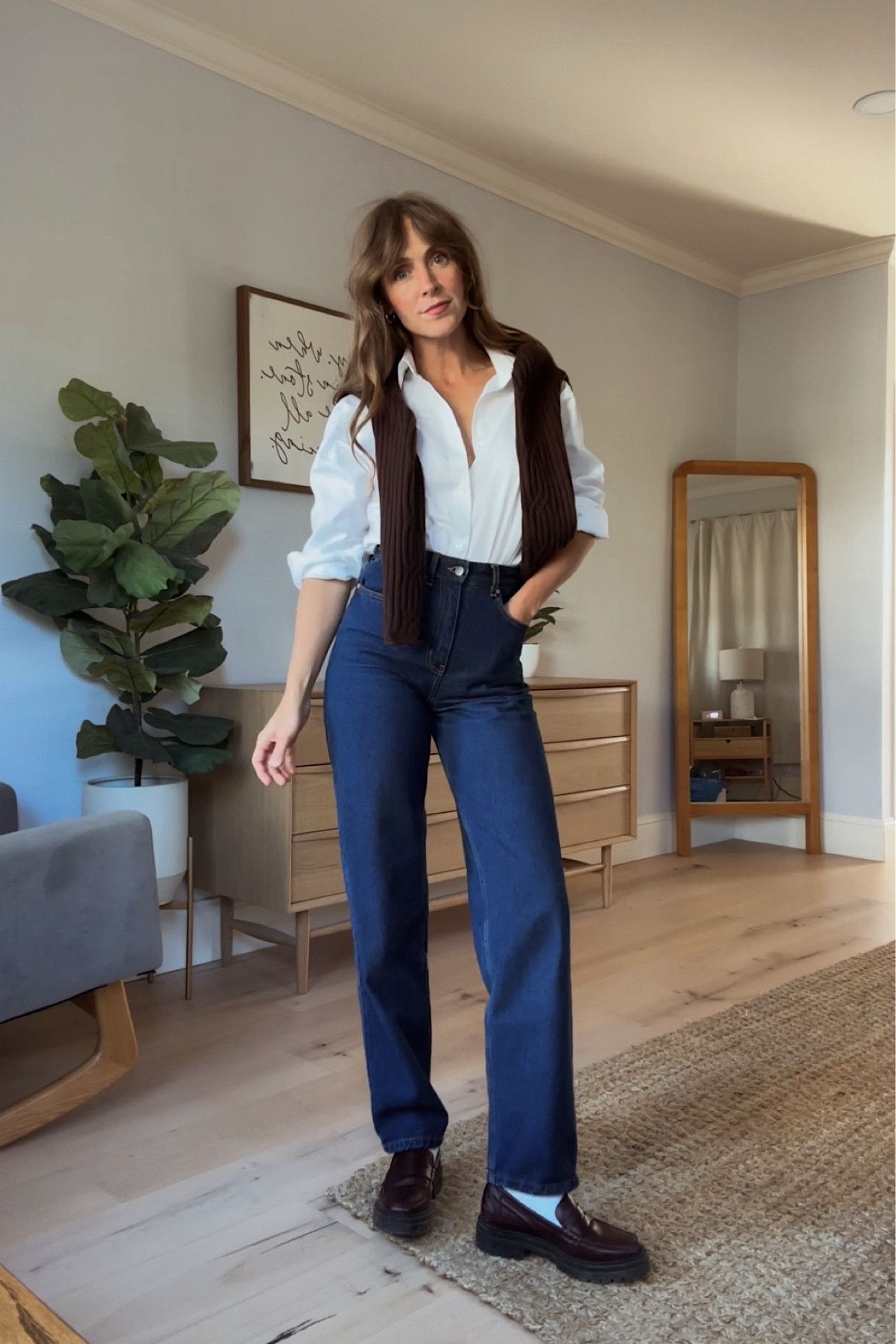 high waisted straight leg Zara jeans โ€”sized up bc no stretch