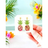 Summer Pineapple Earrings | Glitter Vacation Earrings| Tropical