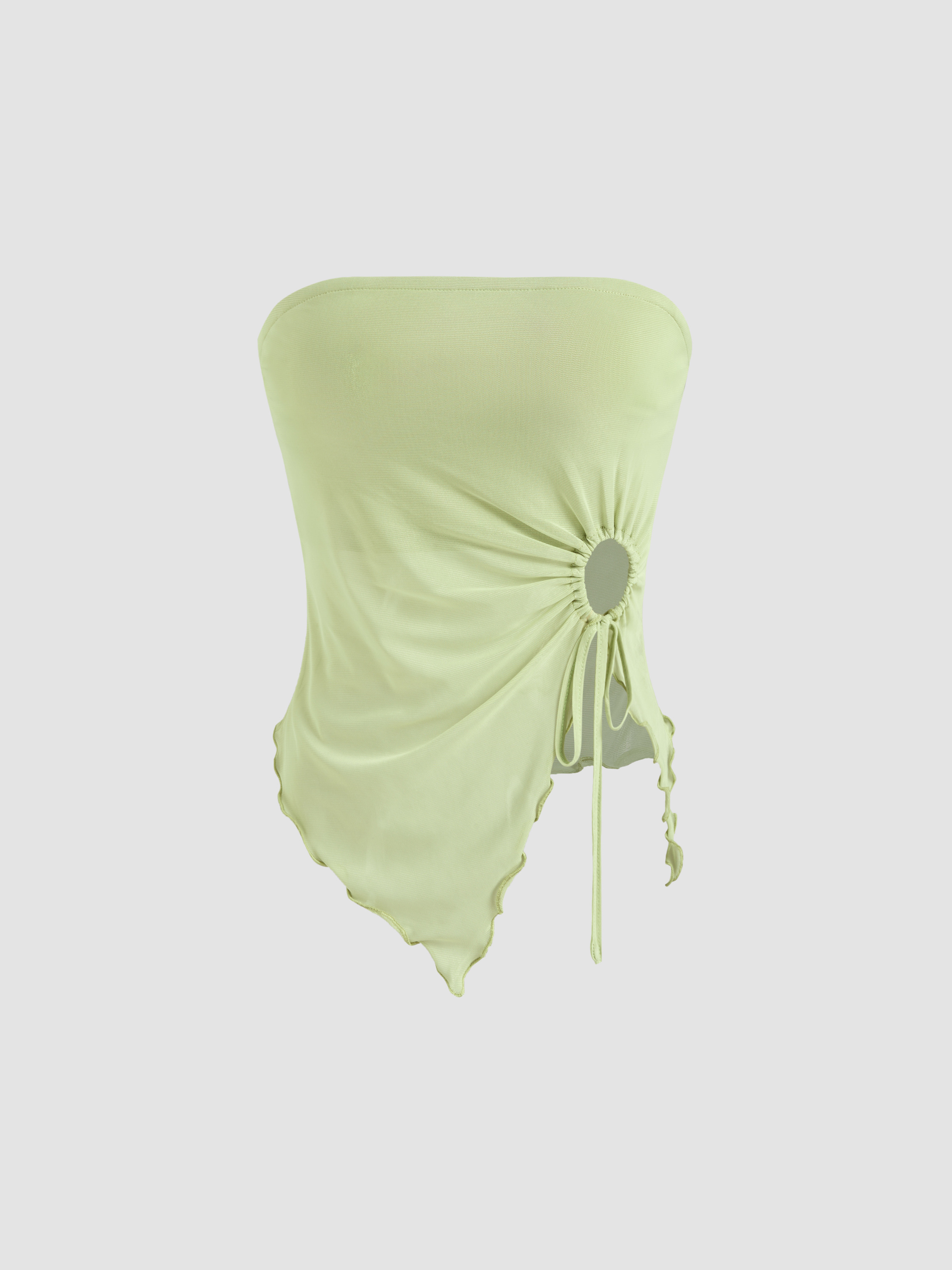 Mesh Mesh Solid O-ring Lettuce Trim Knotted Tube Top For Daily Casual