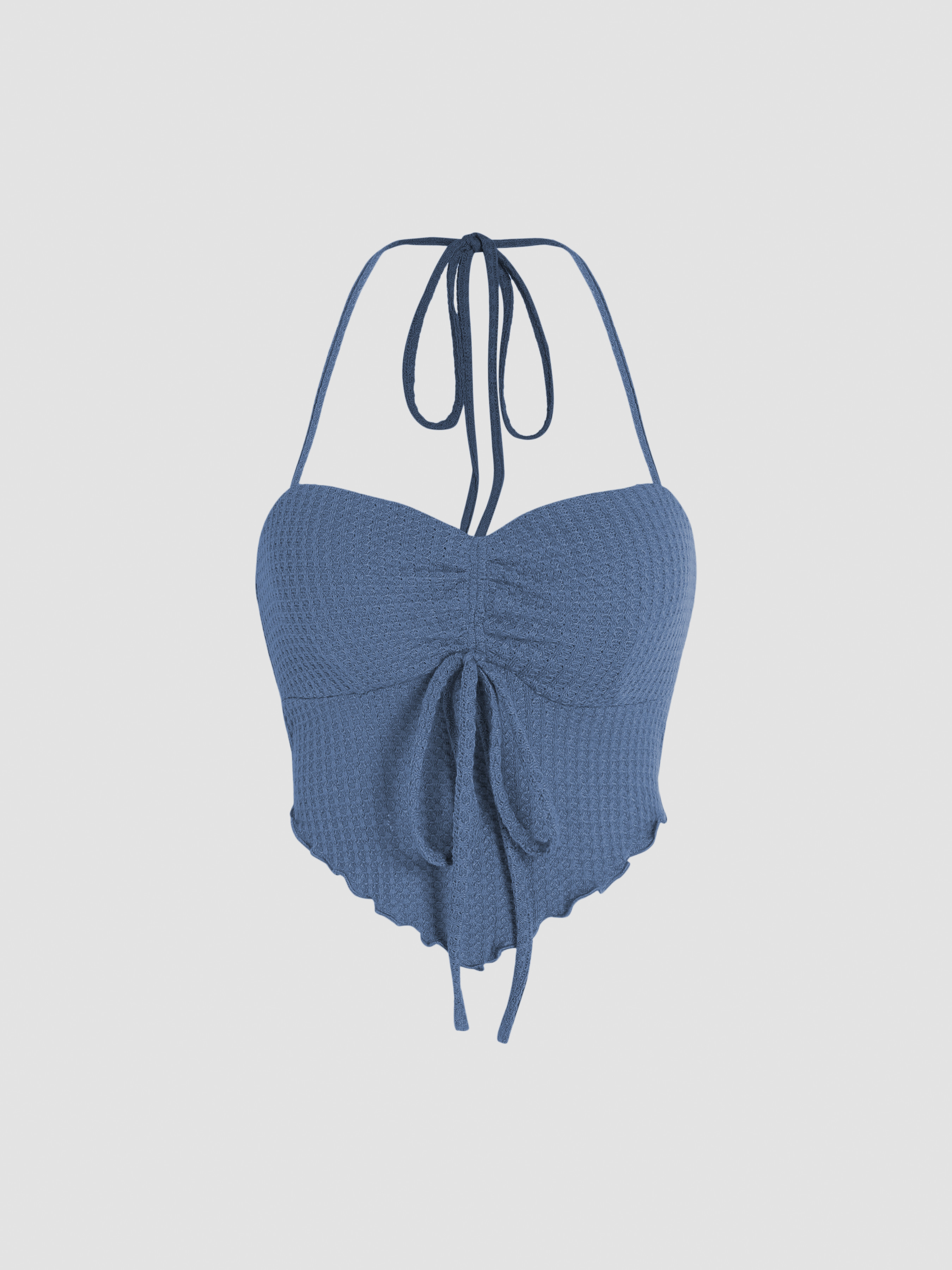 Knit Fabric Texture Drawstring Halter Crop Top For School Picnic Vacation