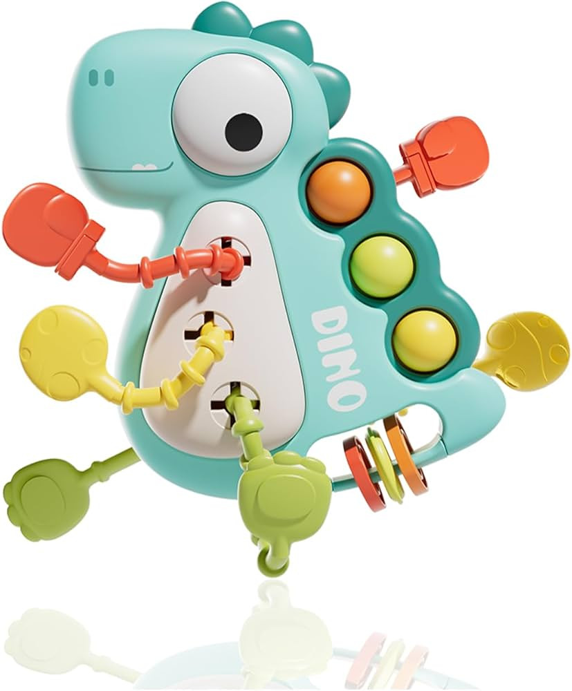 Montessori Baby Dinosaur Toy: Infant Pull String Food Grade Silicone Teething Toys 6-12 Months Tr...
