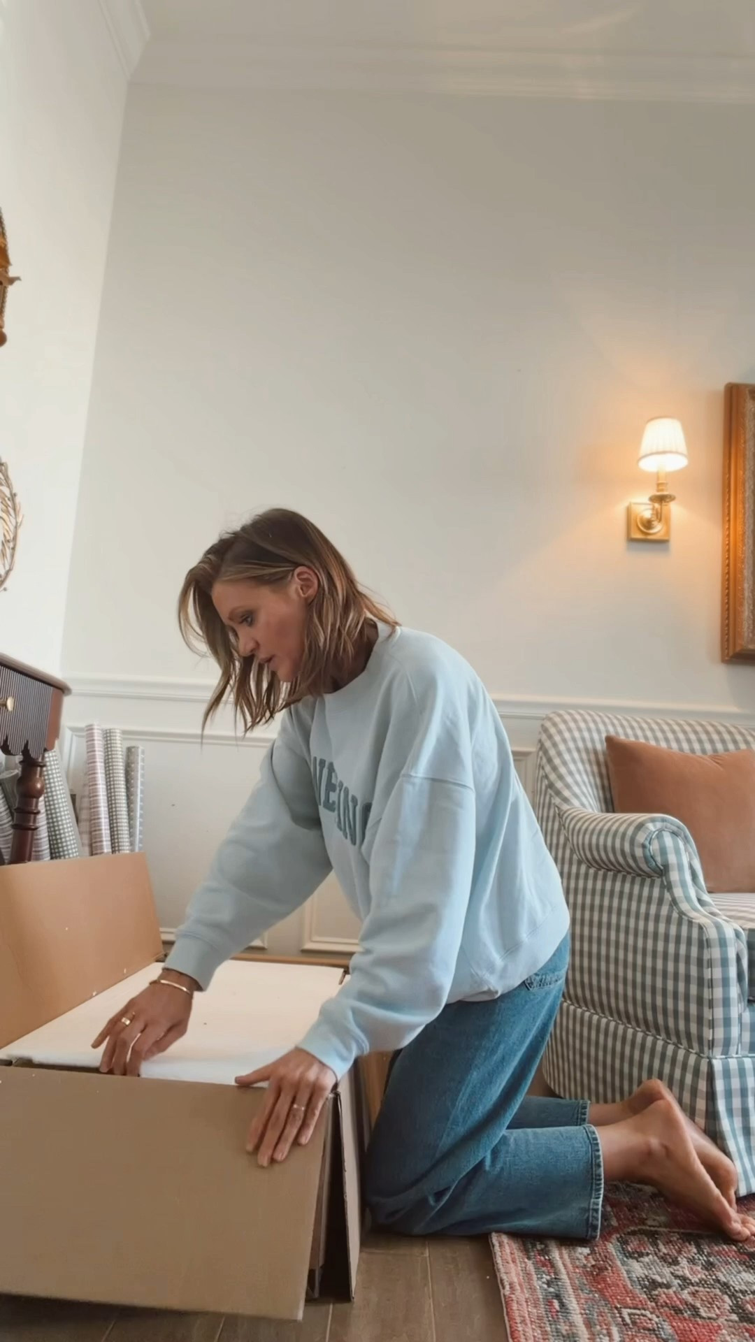 wearing the size Xs in this beautiful sweater from quince. Wearing the 26 in the jeans. They’re so comfortable and the fit is a 12/10. The beloved Bella style we all know and love in a new exaggerated wide leg palazzo. They’re so  comfortable too! @onequince #QuincePartner