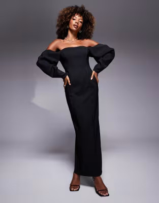 ASOS DESIGN bardot extreme volume sleeve structured maxi dress in black