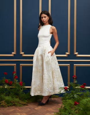 Dream Sister Jane jersey drop hem jacquard maxi dress in cream