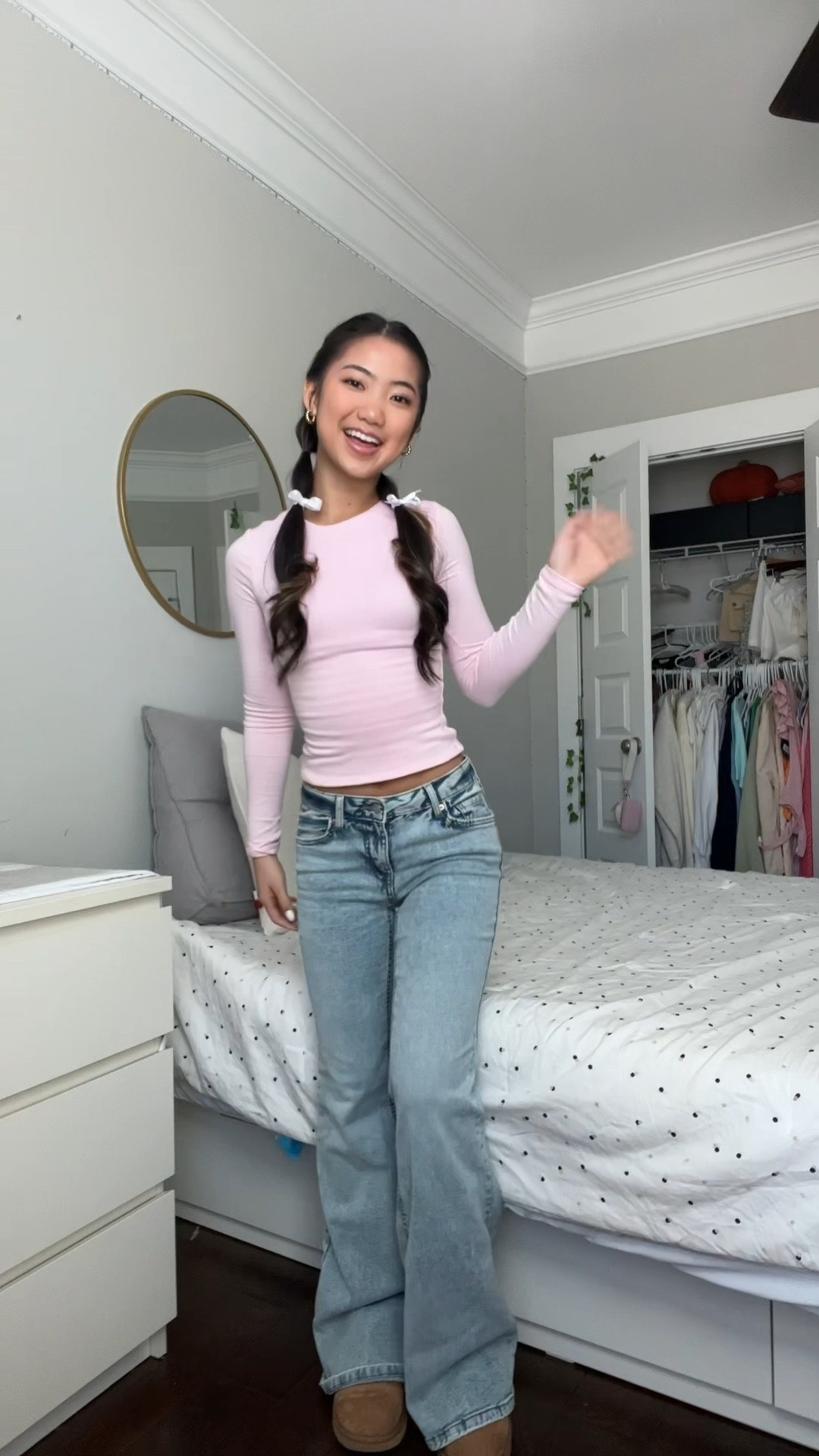 5: top- white fox (xs) similar linked, jeans- 24