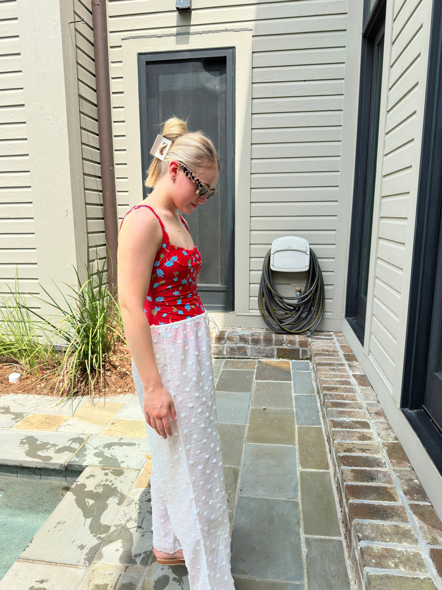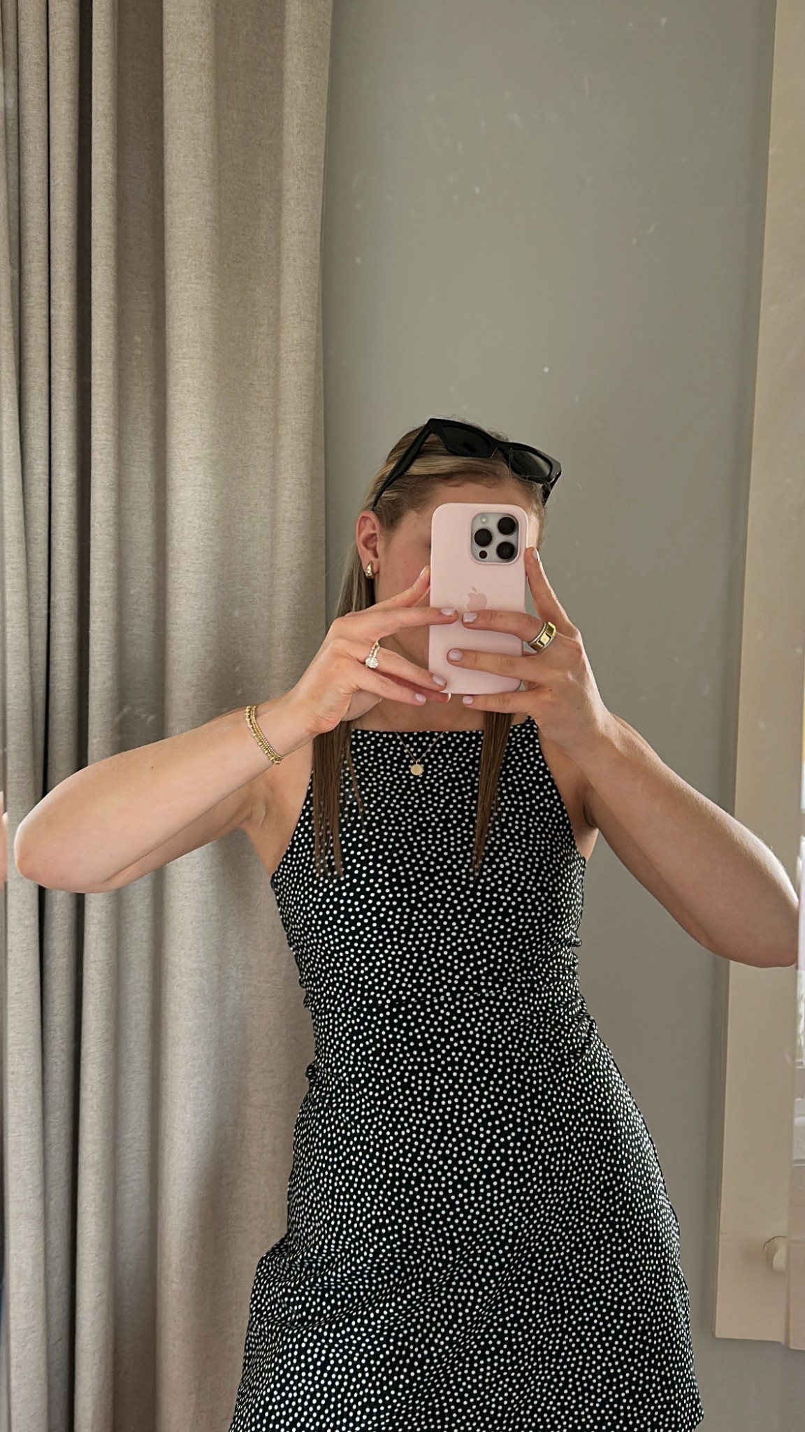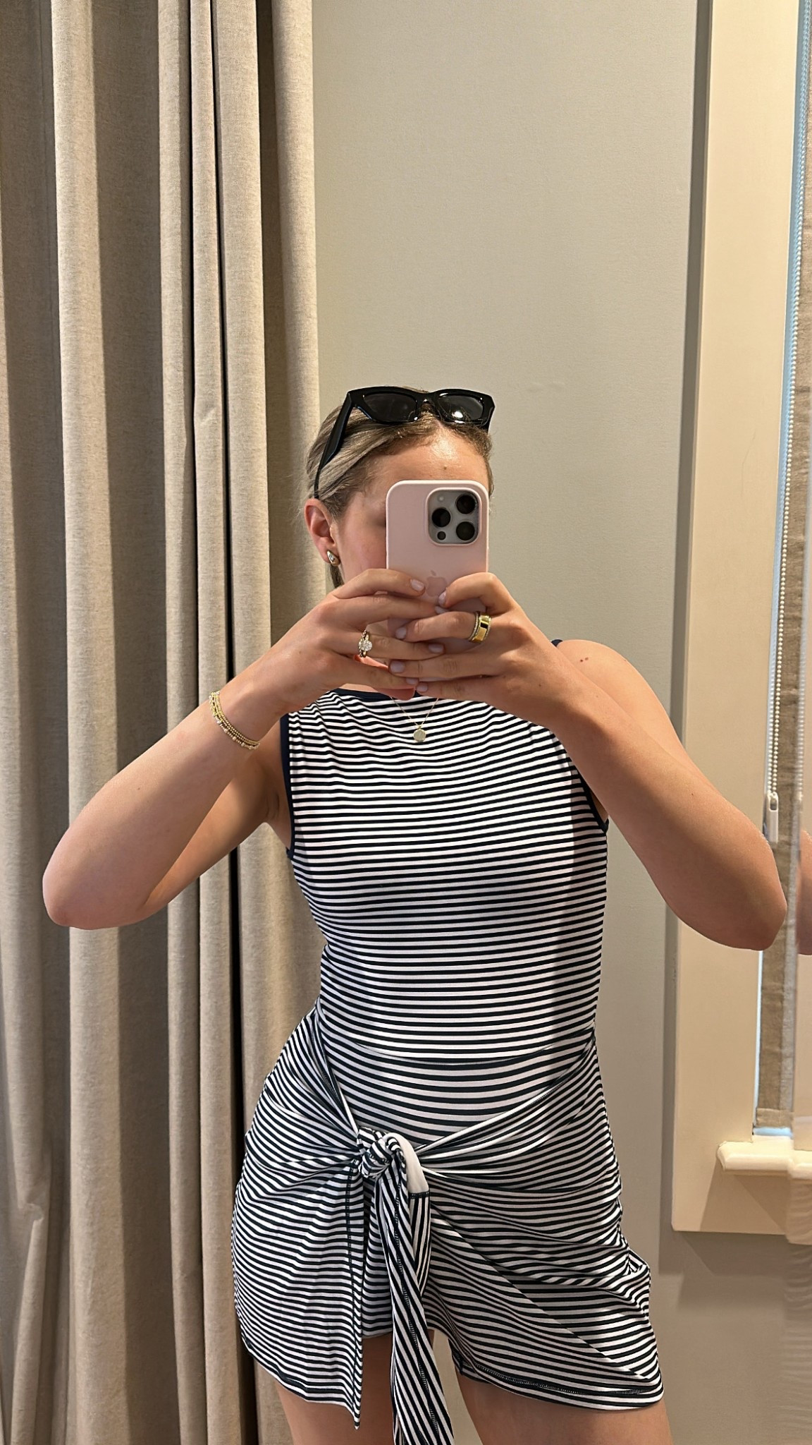 Dress is from Revolve a few years ago! It’s the Rails Black and Brown Bengal Print Dress. I wore gold wrap sandals with my outfit!