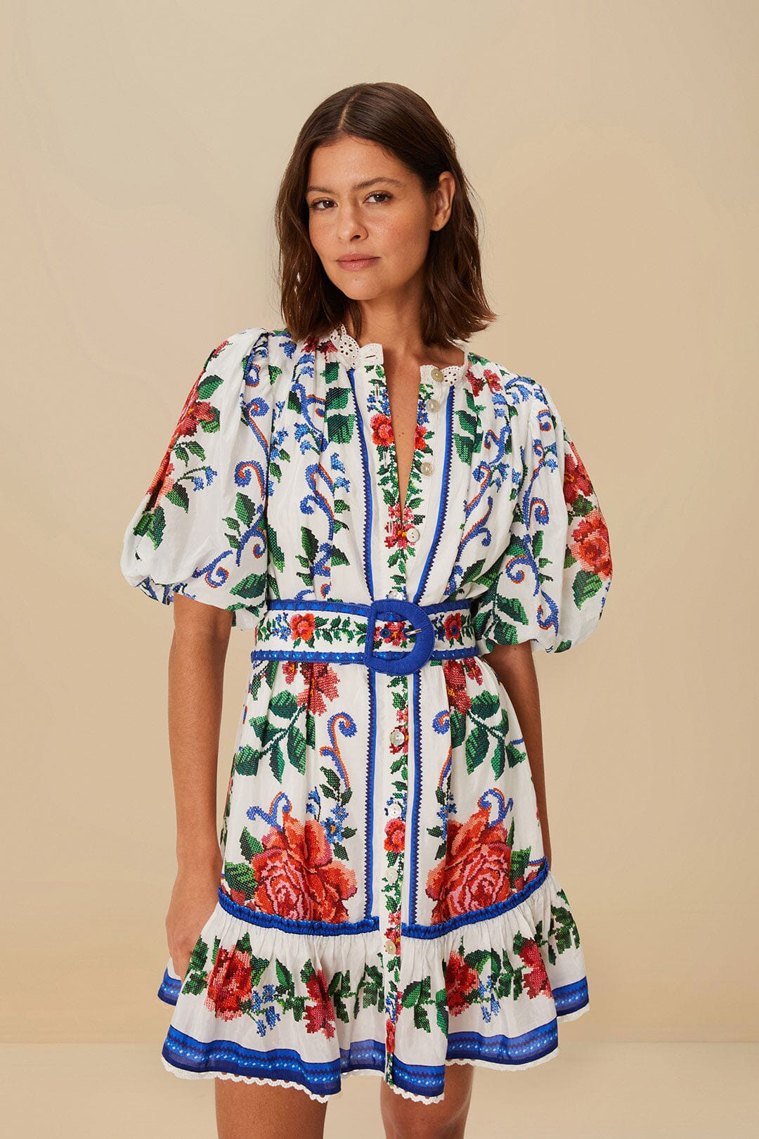 Off-White Flower Tapestry Mini Dress