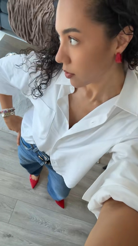 original brands: leather pants (Zara), button down (Banana Republic), shoes (Adidas)