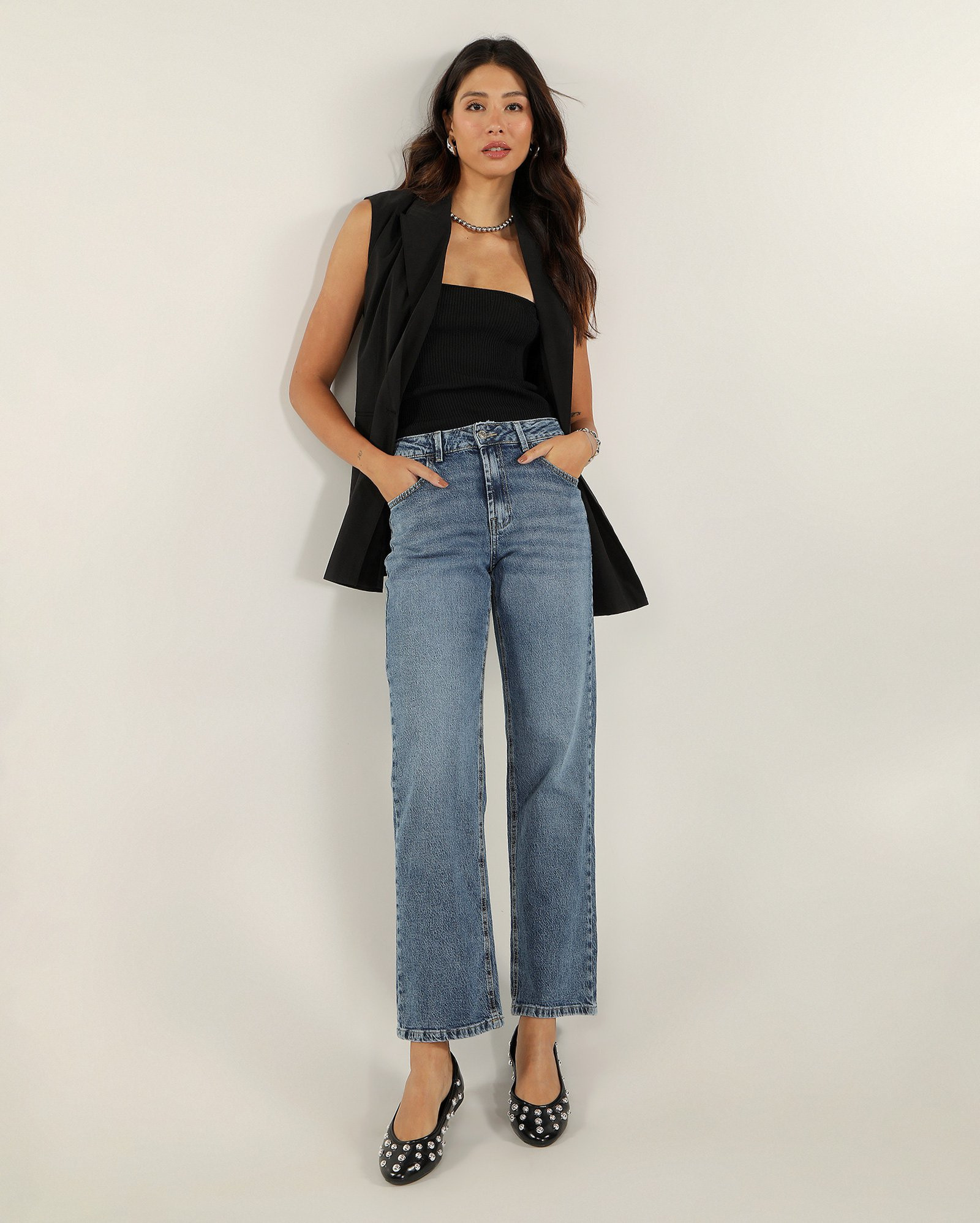 Calça black jeans feminina palazzo cintura média | Pool Jeans