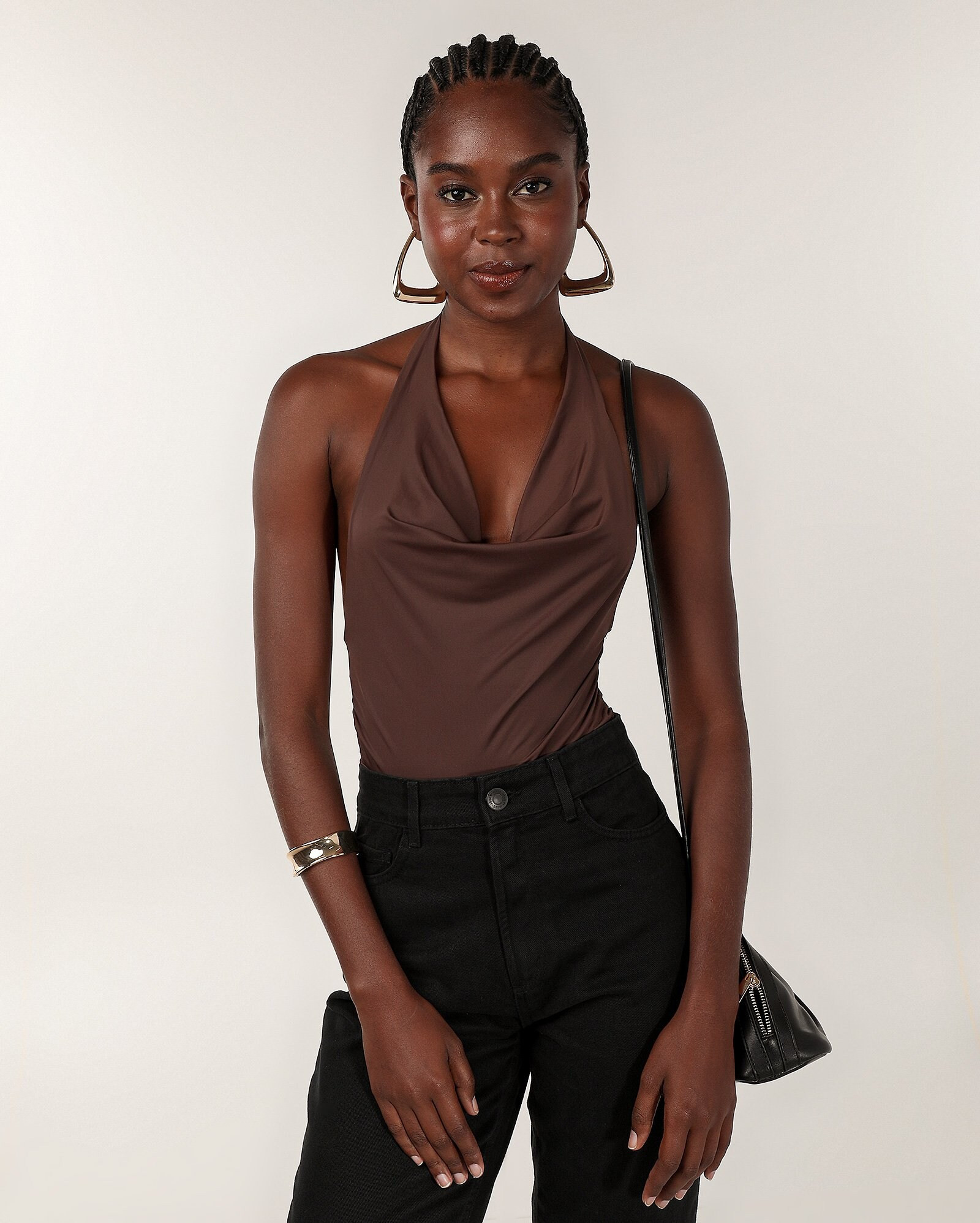 Regata cropped frente única poliamida degagê - Marrom | Pool