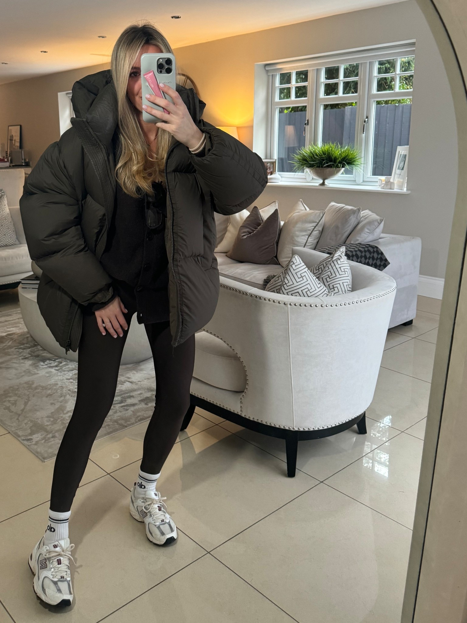 Winter Style, Winter Fashion, Transitional Style, Transitional Fashion, Leather Jacket, New Balance Trainers, Maebe Top, Coord Set, ASOS, Giorgio Armani Cheek Tint