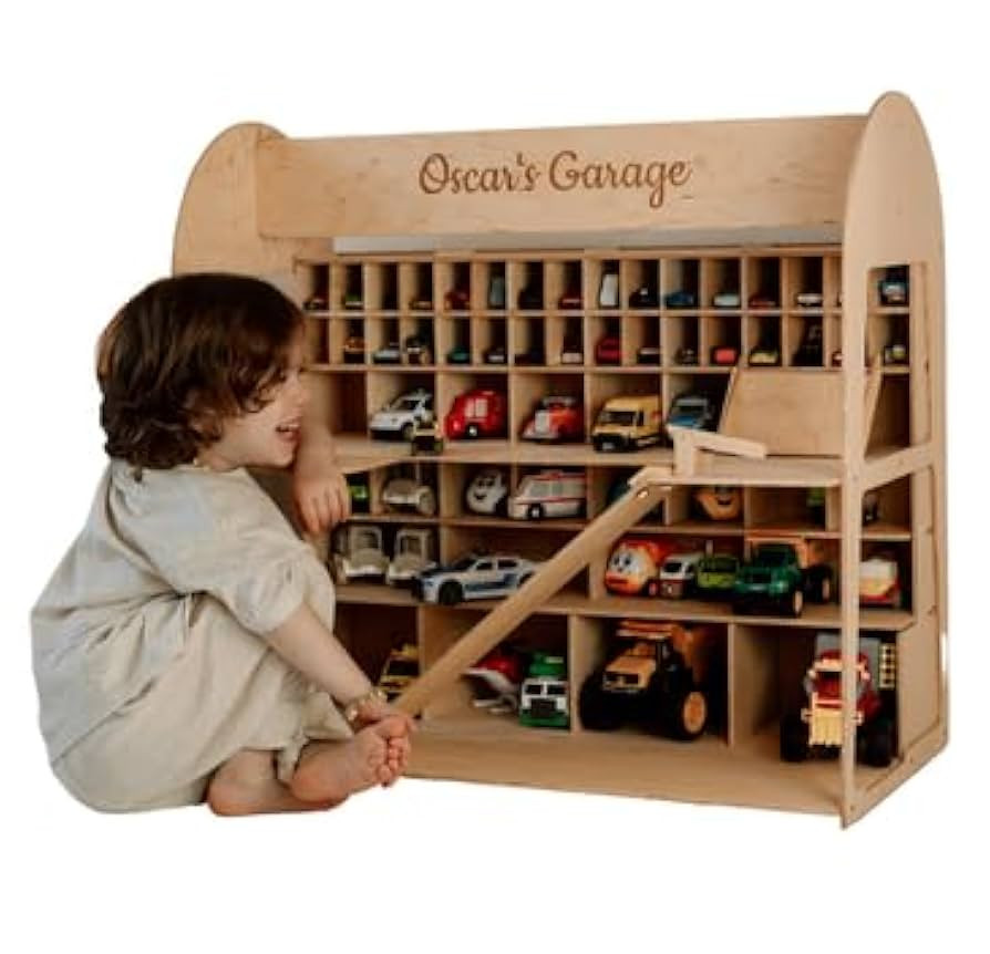 Toy Parking Garage with Elevator Wooden Toy Car Storage Hot Wheels Car Compatible Gift for Toddle...