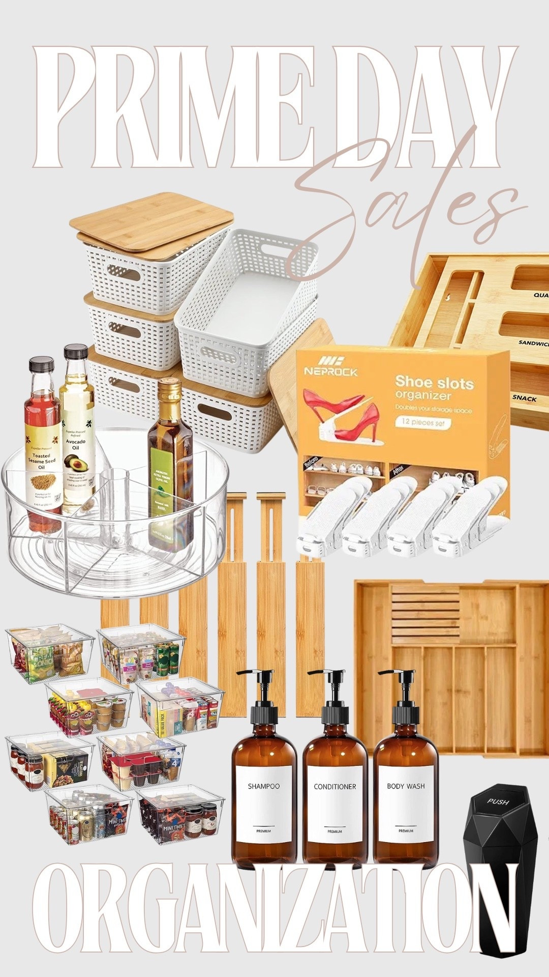 Storage Bins with Lids 6 Packs, Plastic Storage Bins with Bamboo Lids for Pantry Organization and... | Amazon (US)