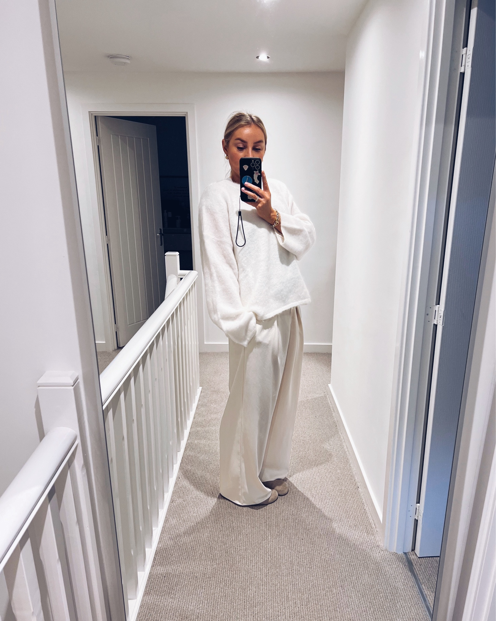Knitwear + fluffy sandals