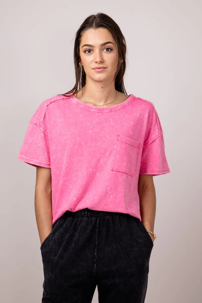 Mineral Wash Knit T-Shirt for Women in Pink