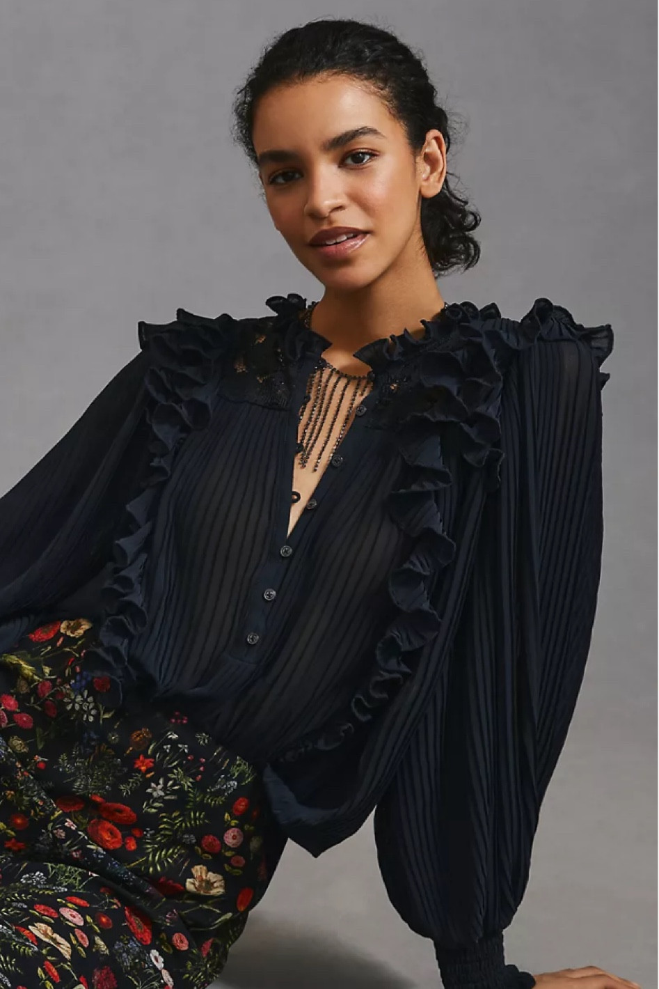 I’ve been wearing his blouse non stop! It has the most darling cut and I sized up to a medium petite for a looser fit which I love!