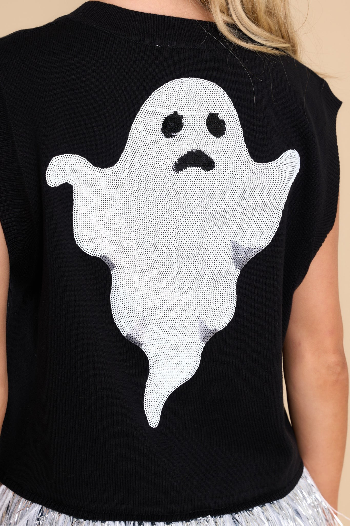 Spooky And Sparkly Black Feather Sweater Tank