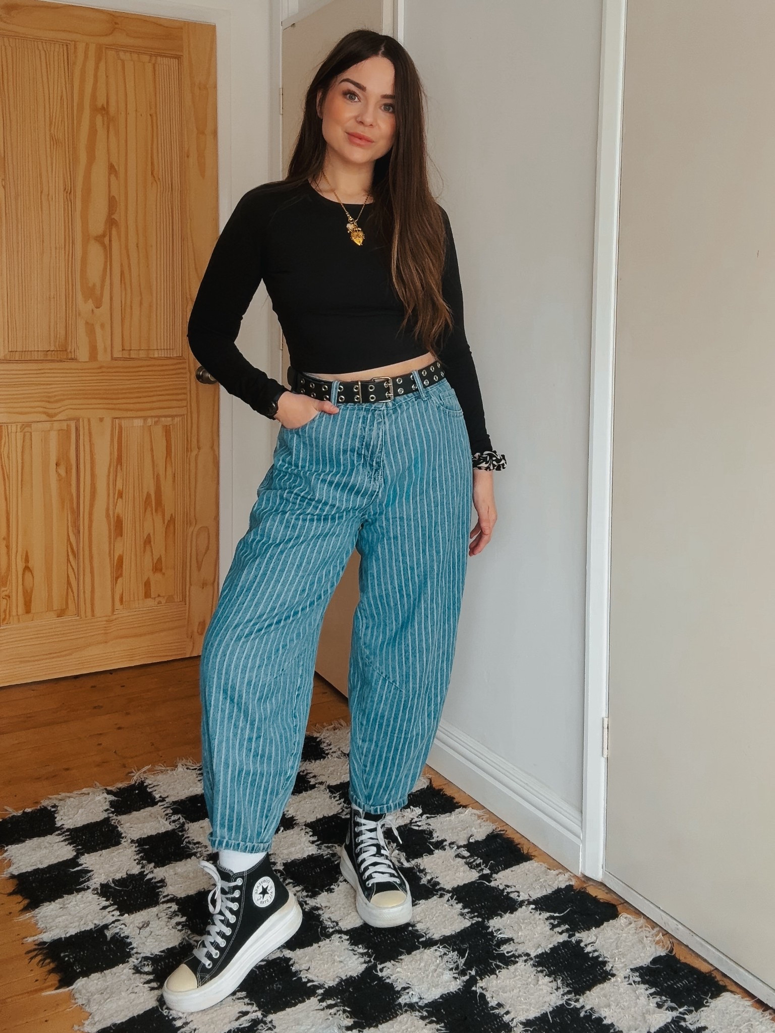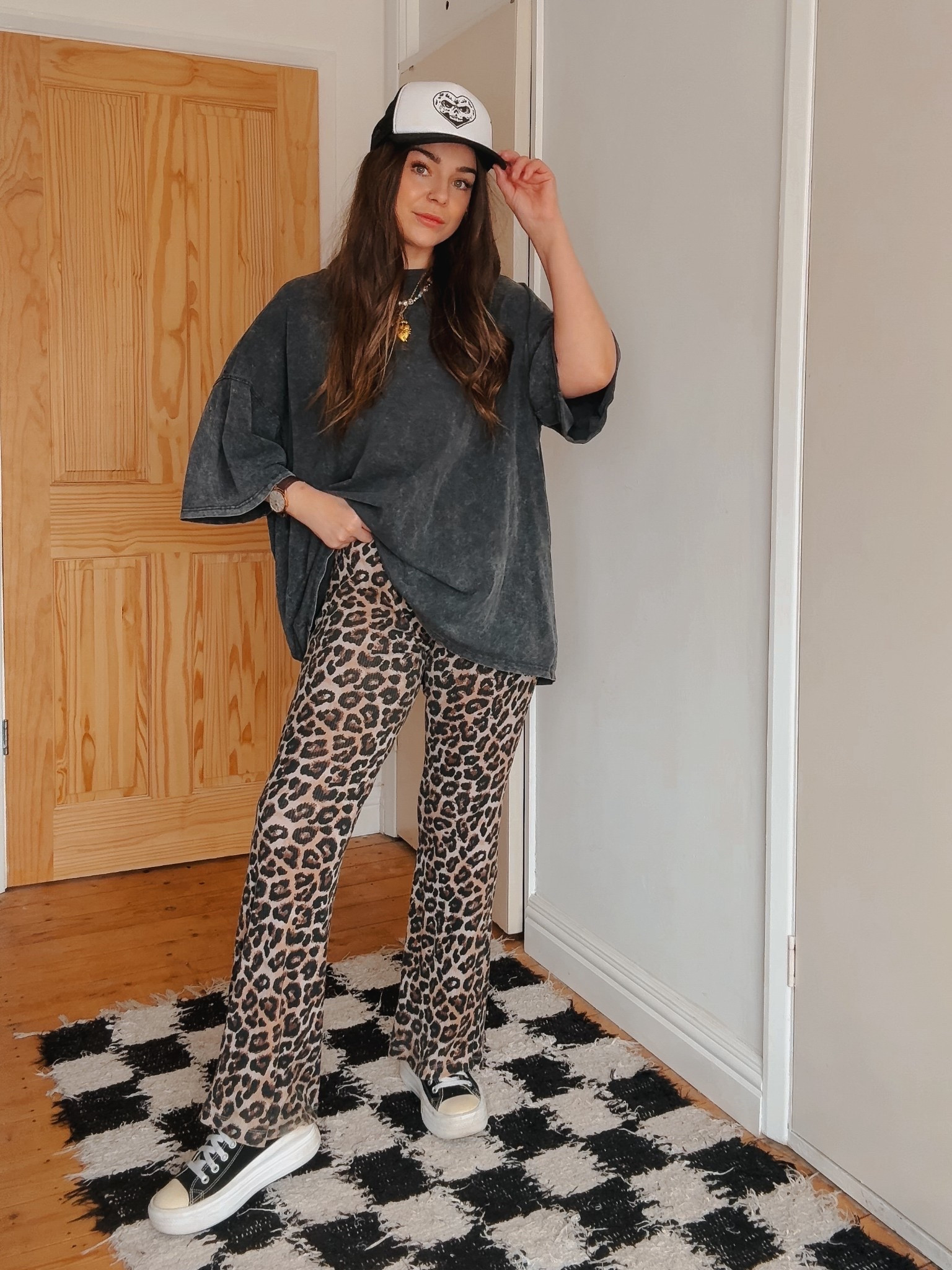 Leopard top, black split midi skirt and chain belt. Alternative style summer outfit. #LTKeurope #LTKunder50 #LTKSeasonal