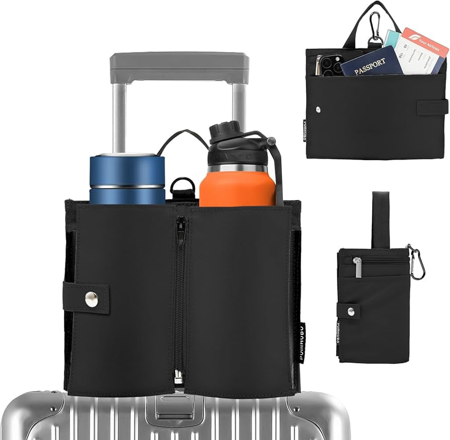 Luggage Cup Holder for Suitcases, Portable Foldable Travel Cup Holder with Handle and Hook, Lugga...