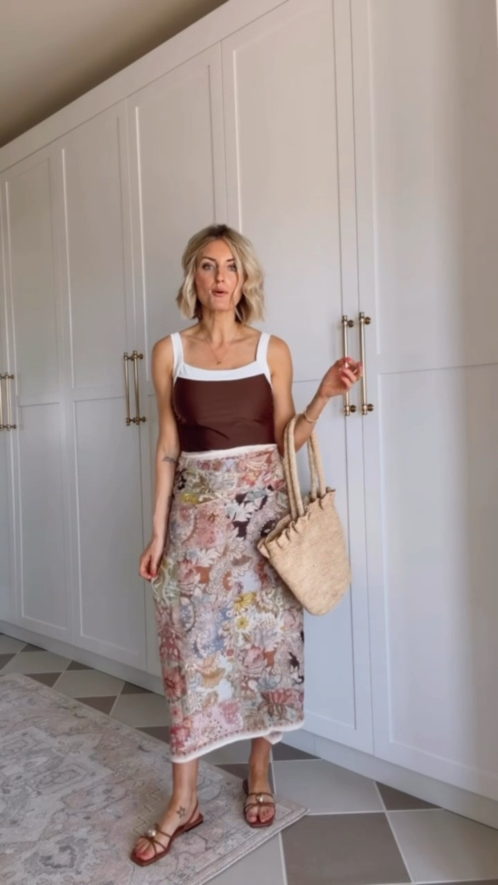 Definitely have had a harder time this year finding swimsuits this year! I’m newly post partum and nursing, so I’m still not wearing my normal sizing! I love this patterned swimsuit! It gives great coverage! Wearing M! And, this cover up set is actually an Old Navy find! So cute! Wearing S in this set!