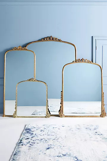 Full length, asymmetric, mantle, antiqued, window pane, industrial, gold frame, frameless