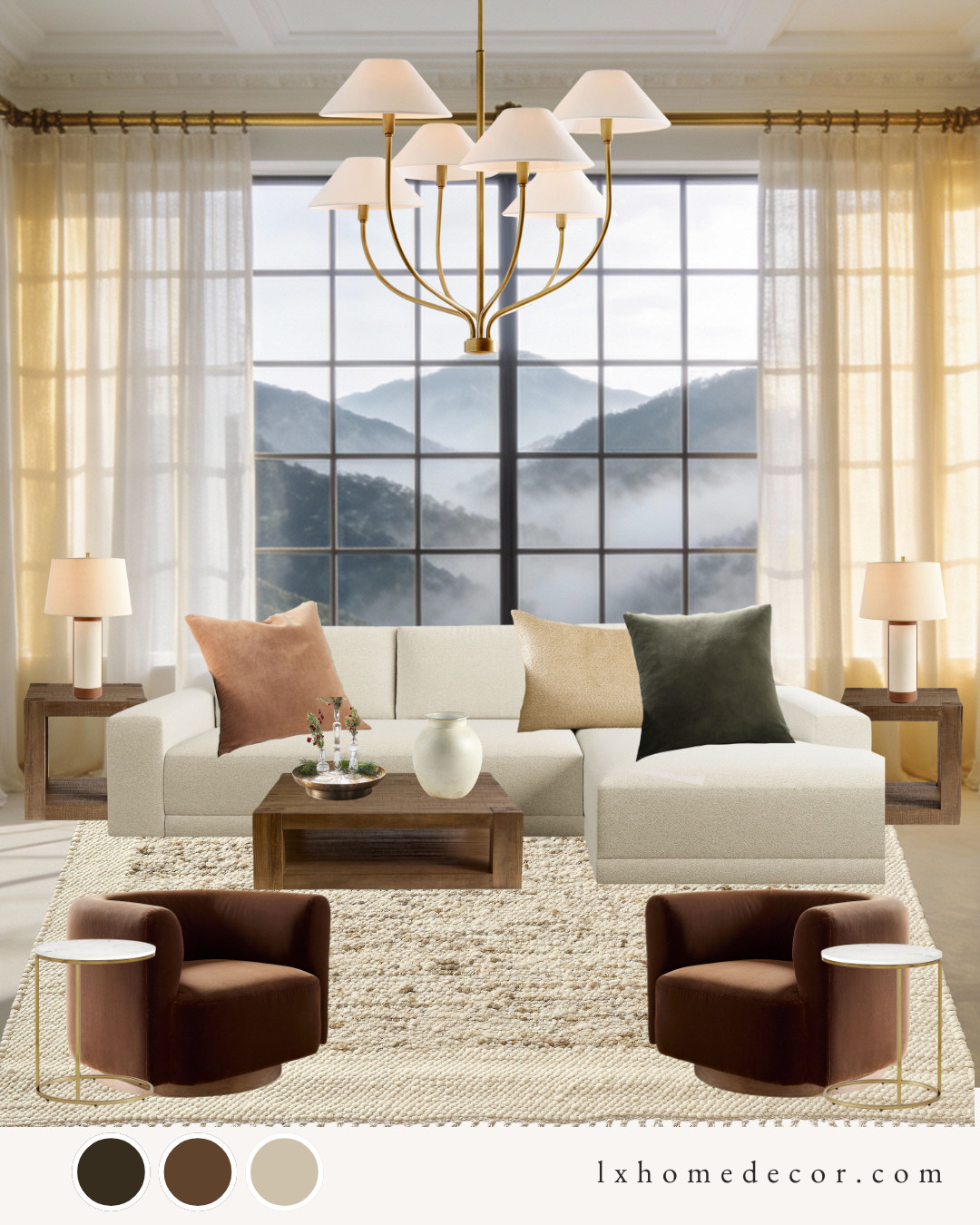 I’m obsessed with the mix of textures in this space. Those cream swivel chairs with fluted wood detailing are total showstoppers! Pairing them with a beaded chandelier and a vintage-style rug creates a look that's pure designer magic. Tap to shop this high-end vibe!