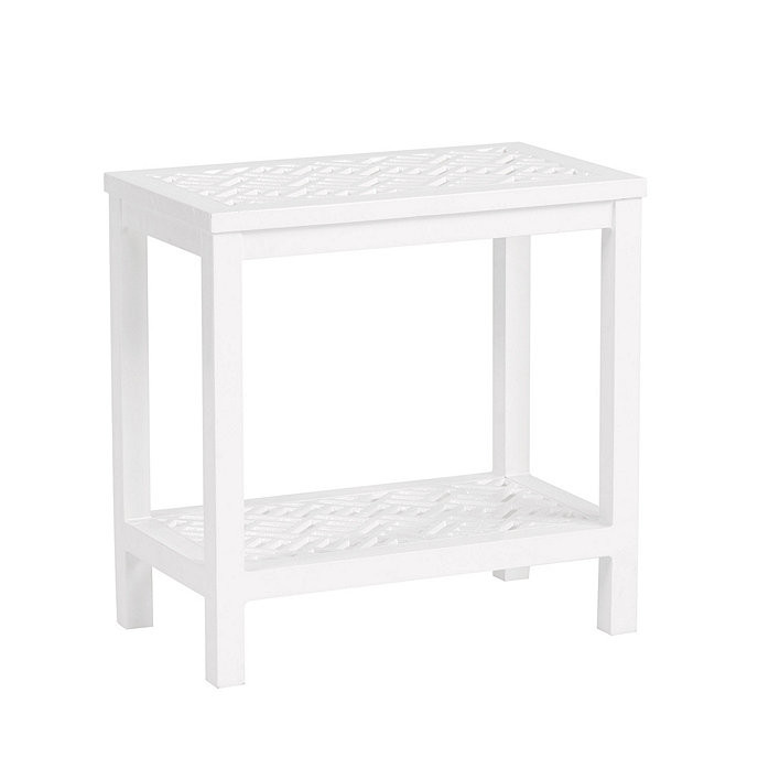 Links to our outdoor dining, lounge furniture, navy and white umbrellas, and sun-resistant pillows