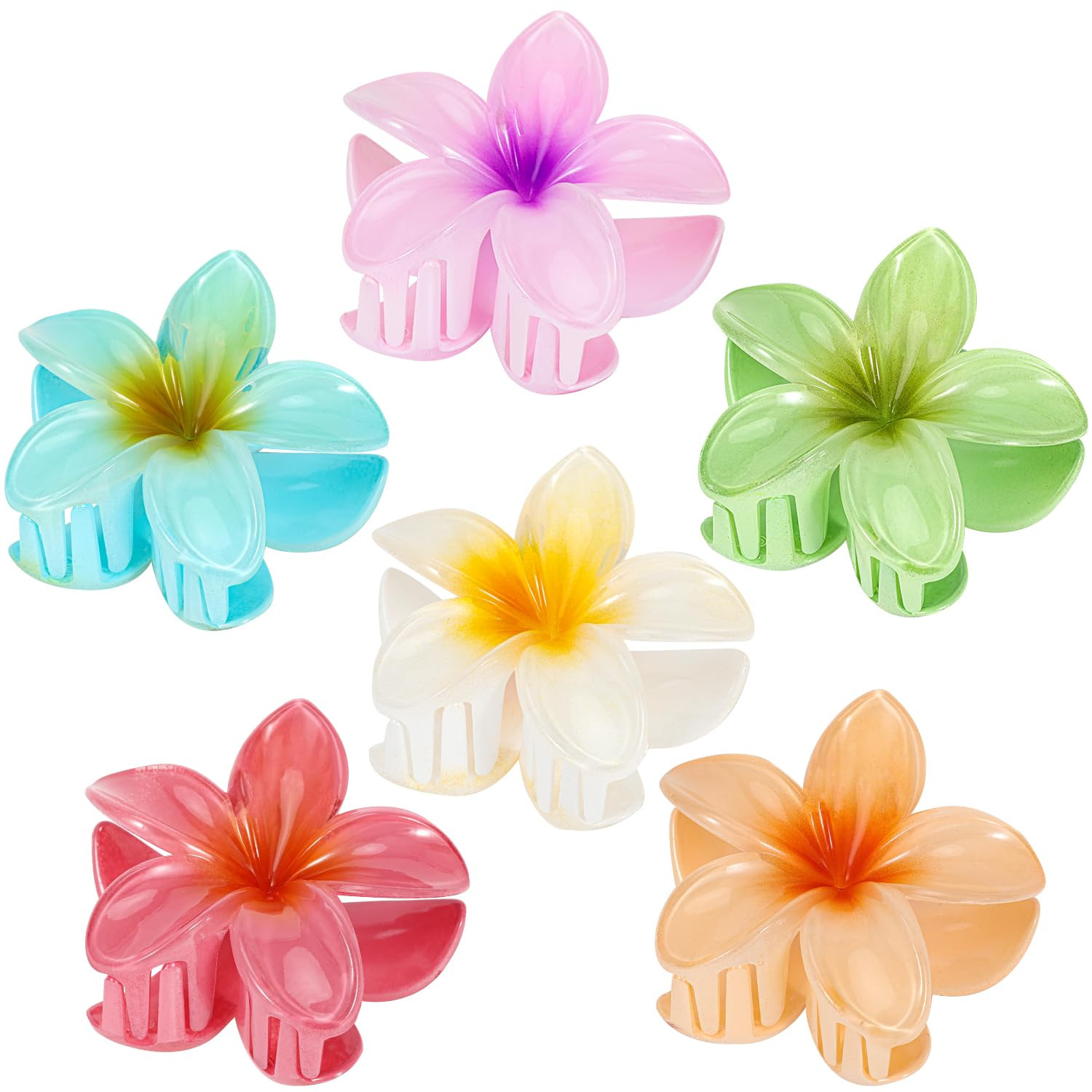 Flower Hair Claw Clips-6PCS for Thick Hair, Hawaiian Plumeria Hair Clips, Preppy Flower Hair Clip...
