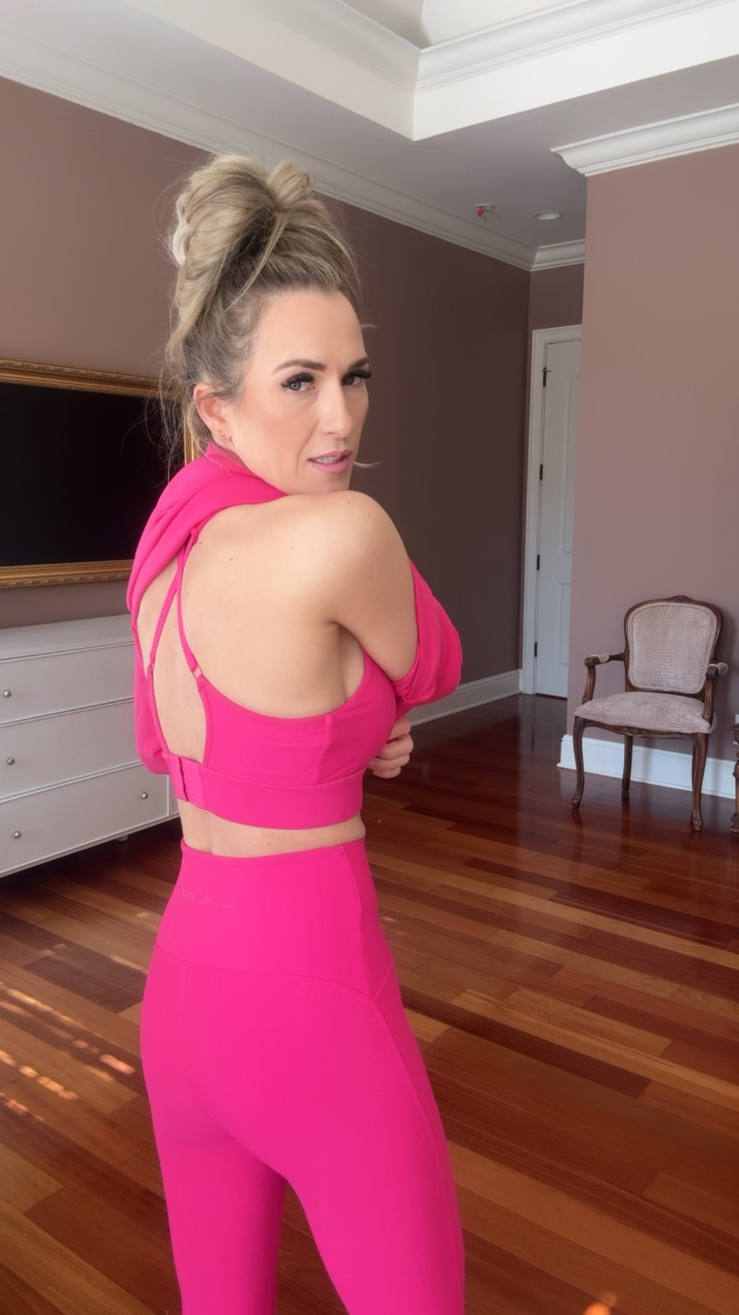 I worked with my paint swatches and ChatGPT to get the perfect peachy pink for our foyer! I can’t believe how the paint color and adding crossheads elevated this space!