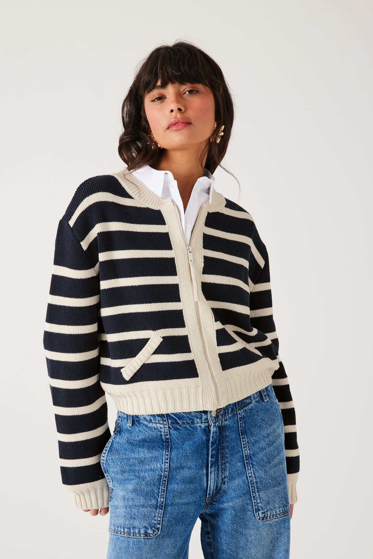 Gilet bomber rayé Femme - Rayé écru