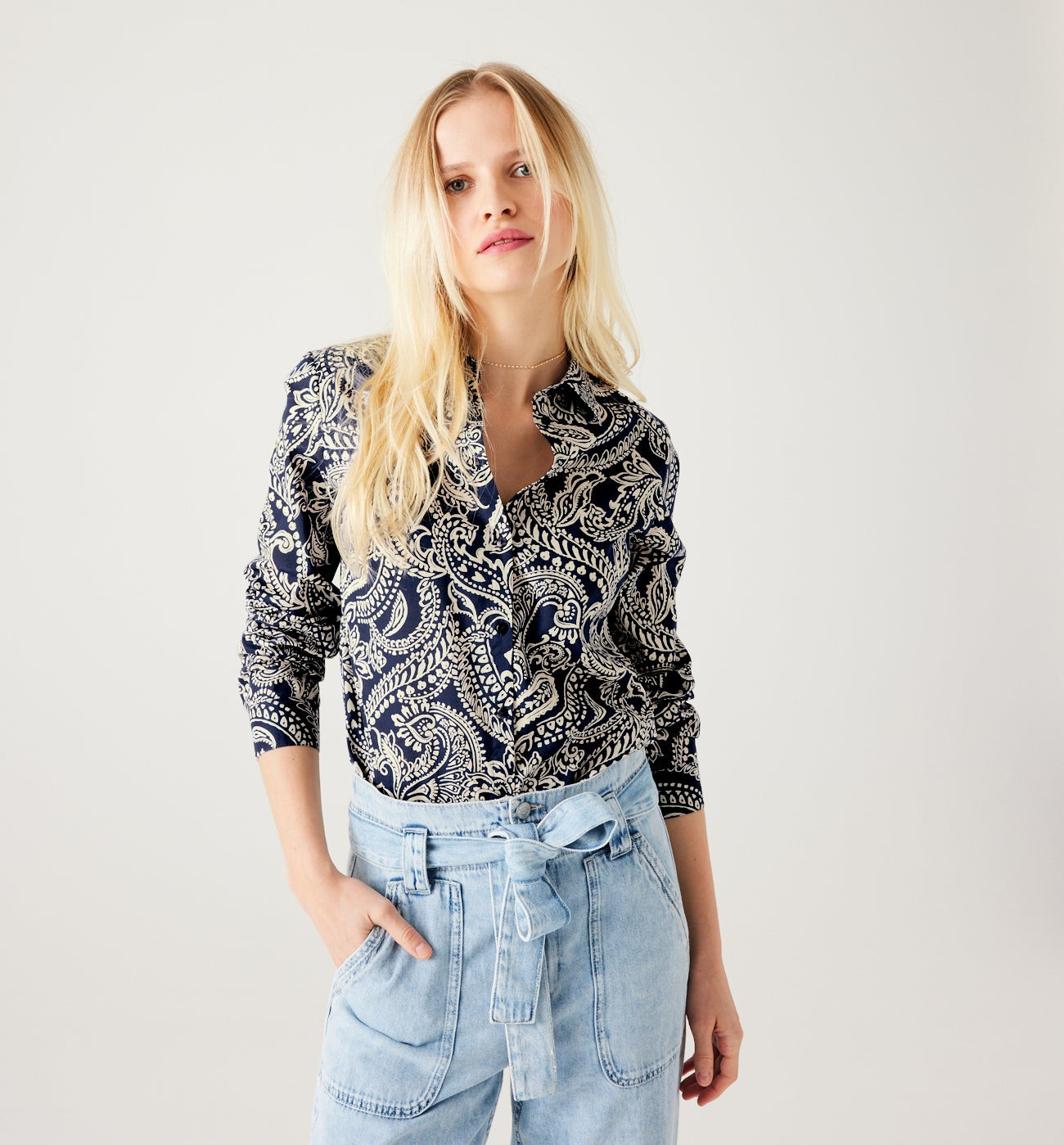 Chemise imprimée motif indien - Imprimé bleu