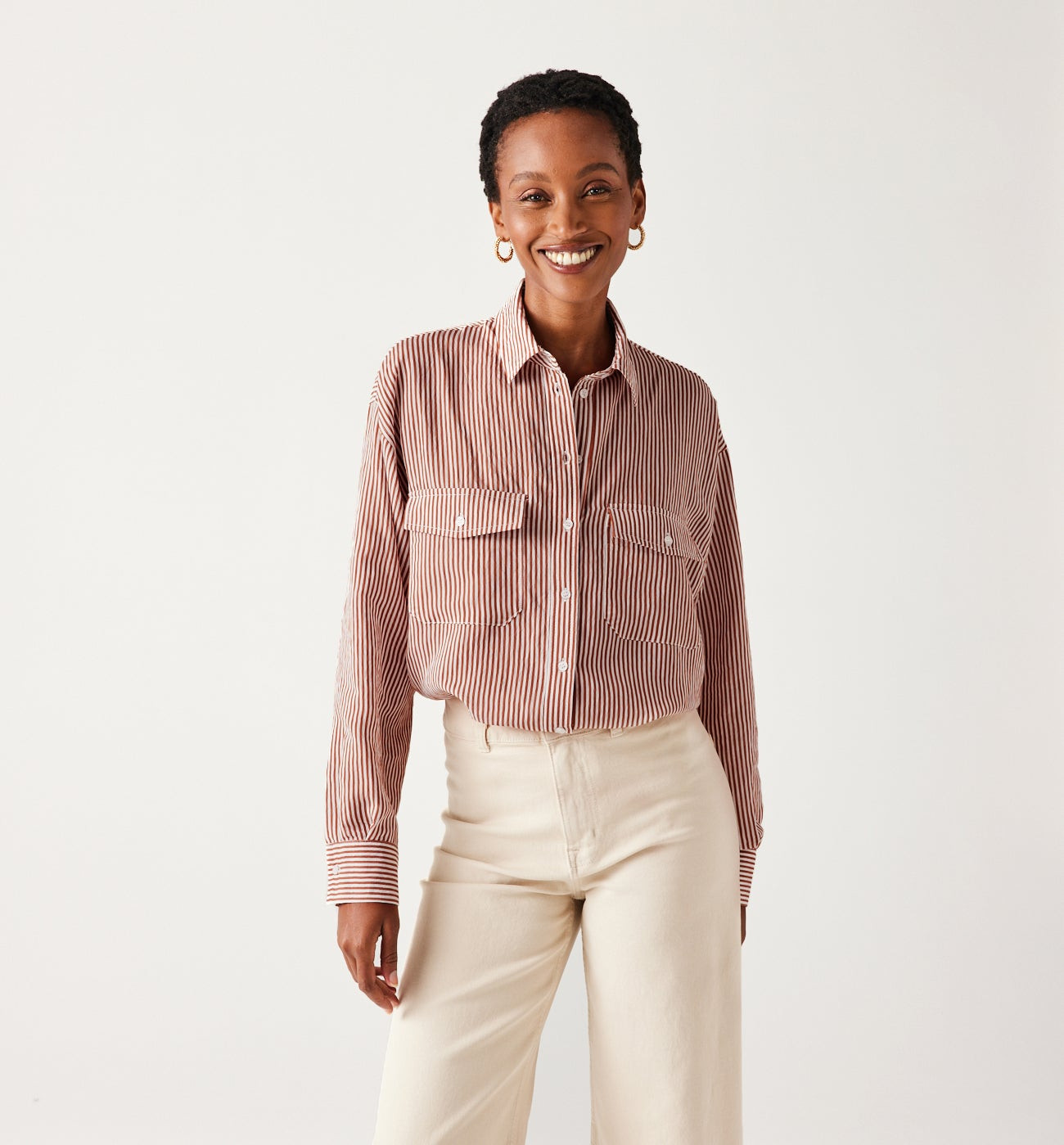 Chemise rayée oversize Femme - Rayé écru