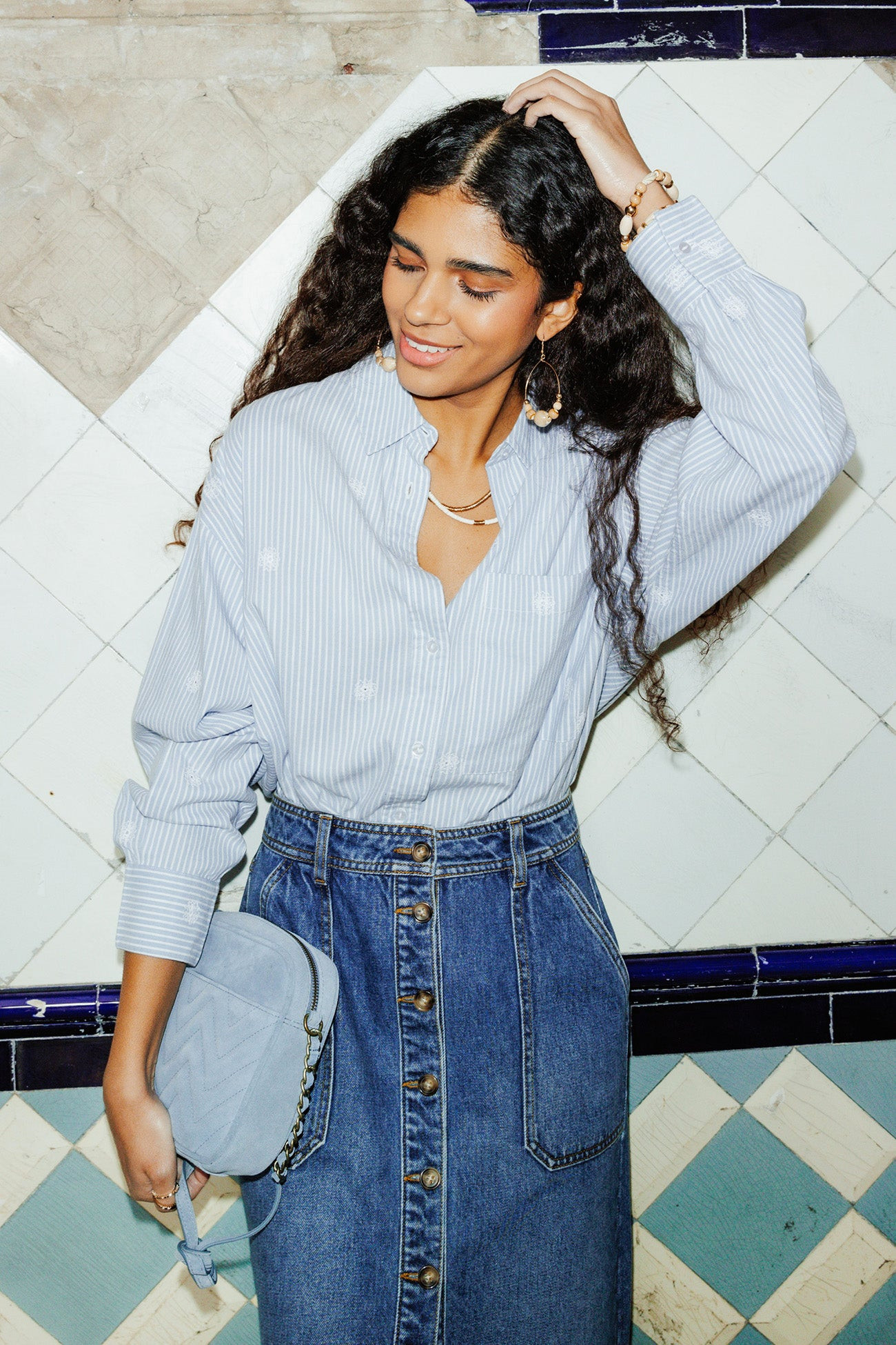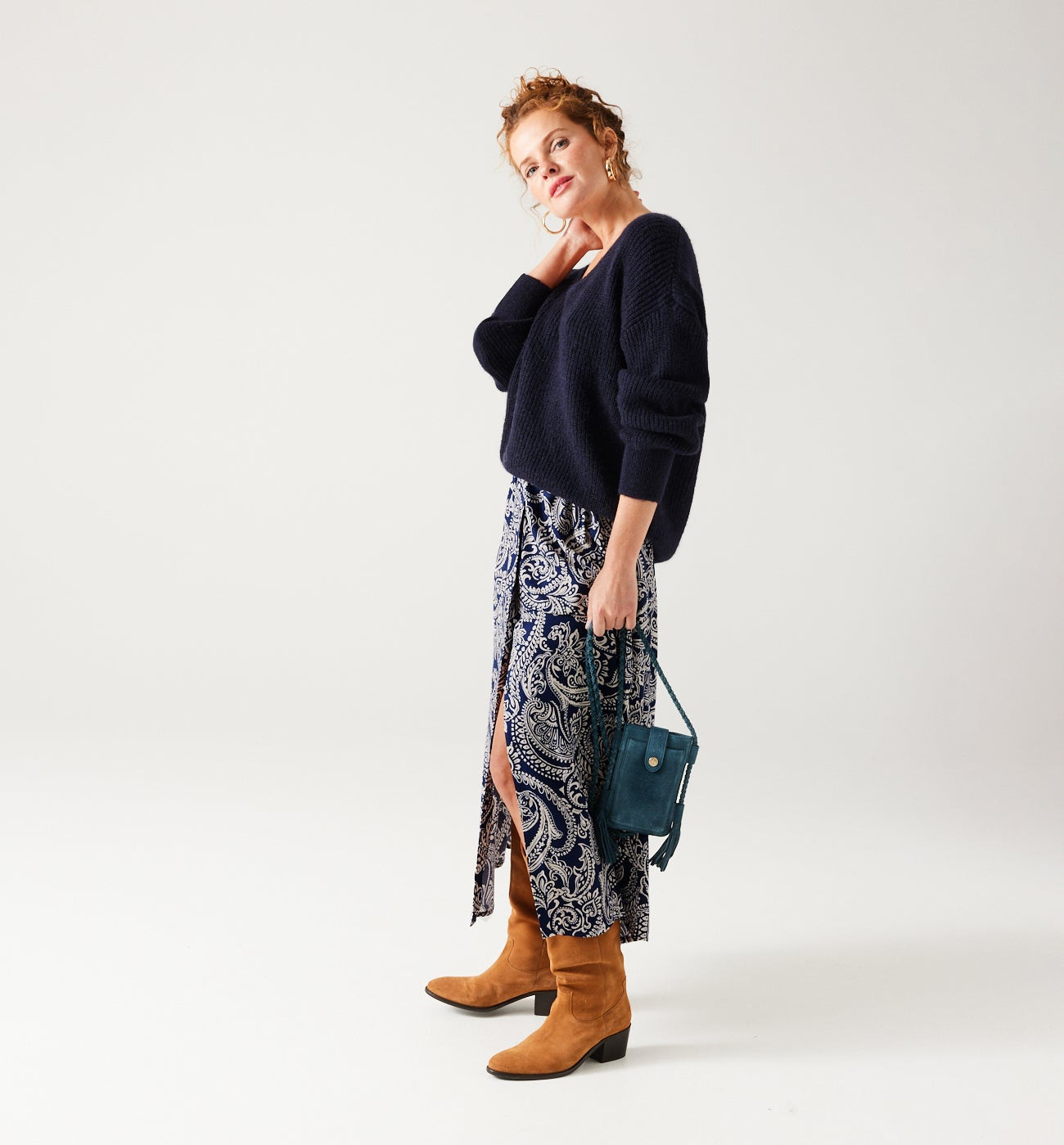 Jupe midi imprimée Femme - Imprimé bleu