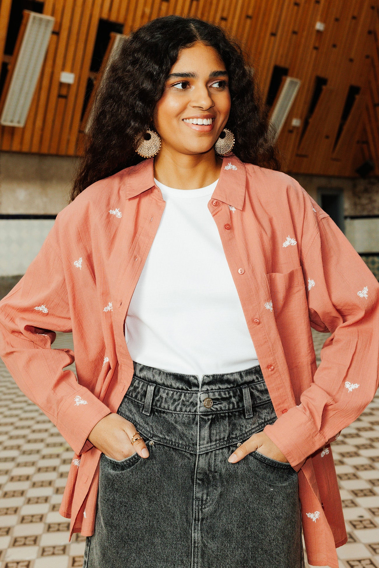 Chemise oversize brodée - Rose