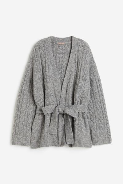 Gilet en maille torsadée avec ceinture à nouer