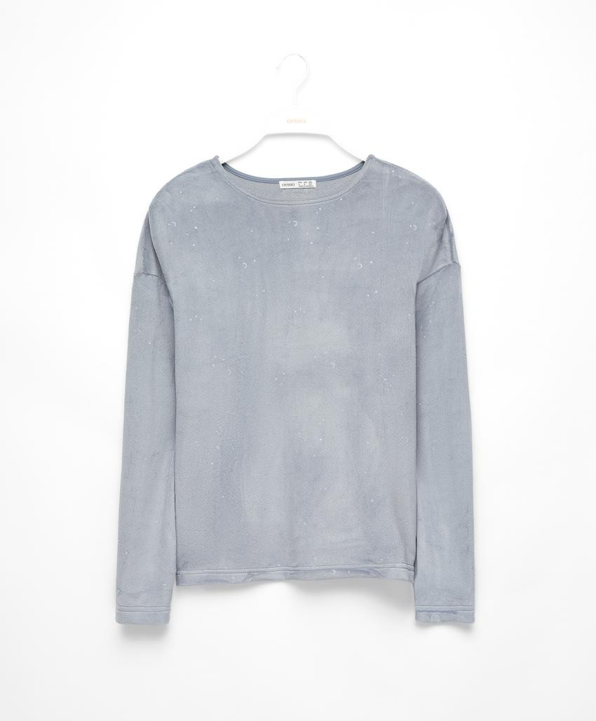 T-shirt à manches longues en velours imprimé | OYSHO France