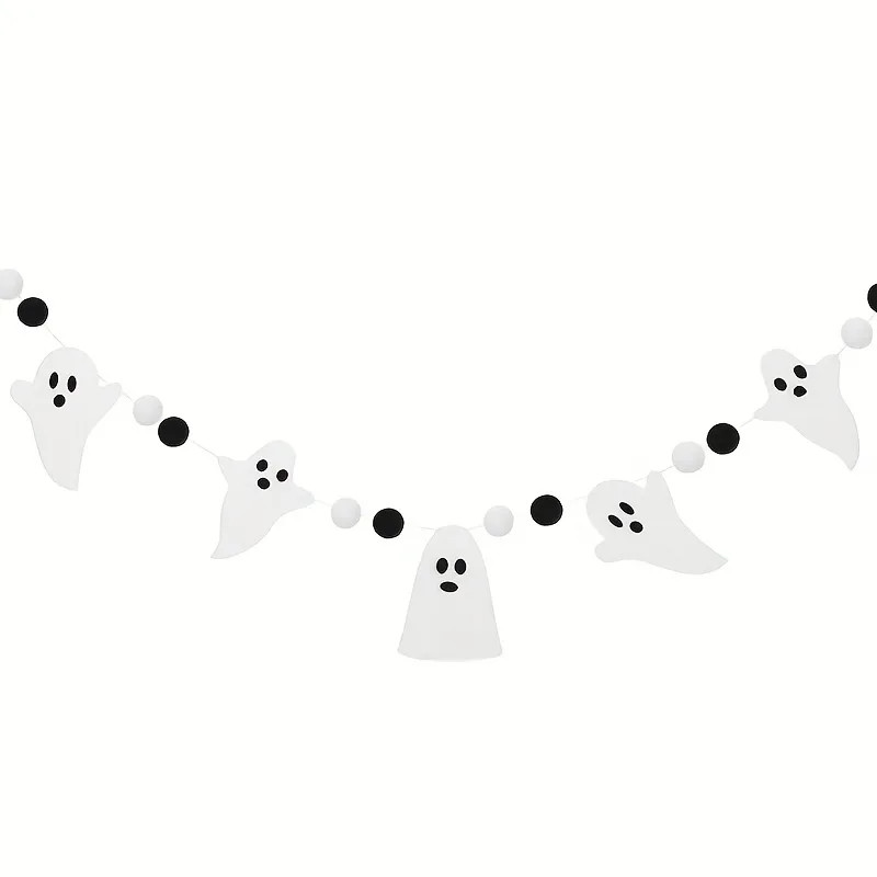 Set, Halloween Ghost Garland, Felt Halloween Banner Decoration, Hairball Style Pull Flag Party Ac...
