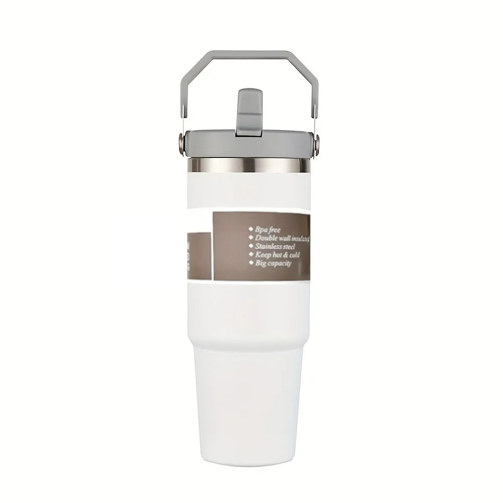 1pc, 30oz Stainless Steel Water Tumbler with Straw - Large Capacity Metal Vacuum Cup for Outdoor ...