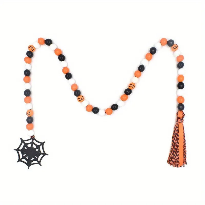 1pc, Halloween Hemp Rope Tassel Wooden Beads Beads Creative Holiday Colorful Wooden Beads Cotton ...