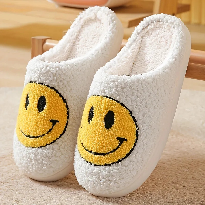 Soft Plush Cozy House Slippers Anti-skid Slip-on Smiling Face Shoes Indoor For Men Winter Shoes
