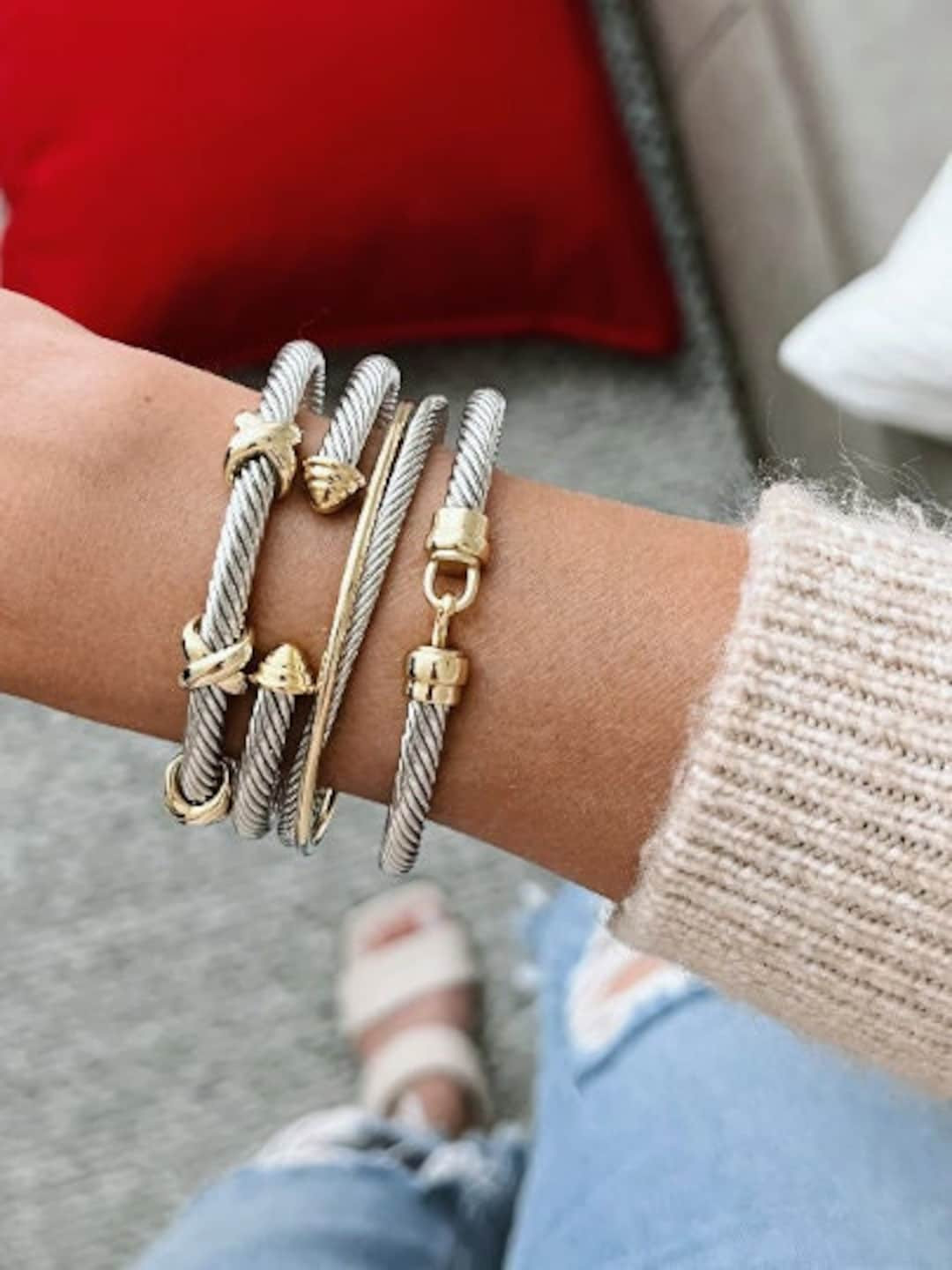 Cable Bracelet, Silver Cable Bracelet, Cable Bangle, Cuff Bracelet For Women, Bracelet Stack, Twist