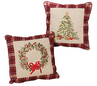 Plush Throw Pillows with Wreath and Christmas T ree Accents