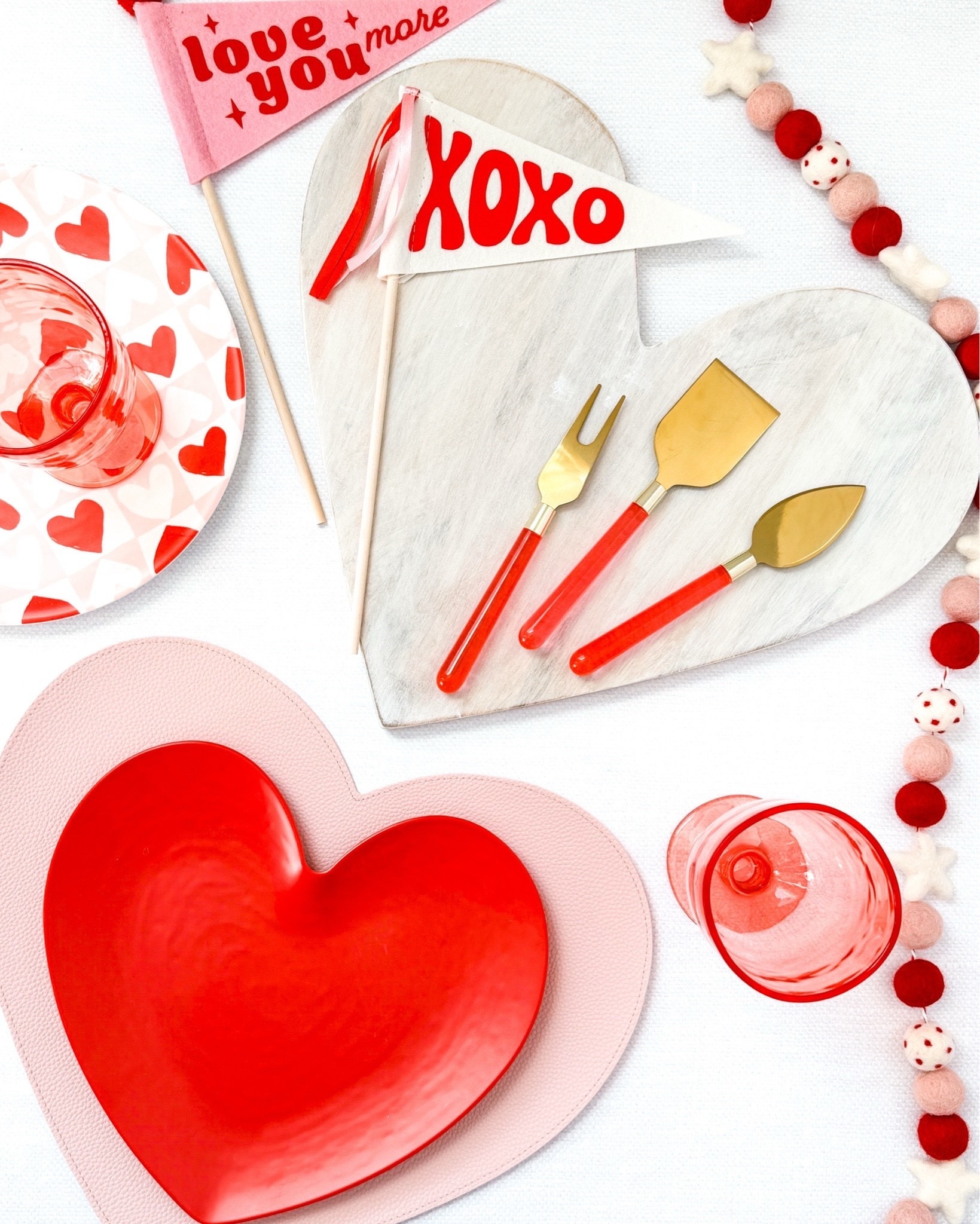 Valentine’s Day napkins, heart shaped cookie cutters, heart and Valentine’s Day decor, platters, plates and bakeware to celebrate the day.