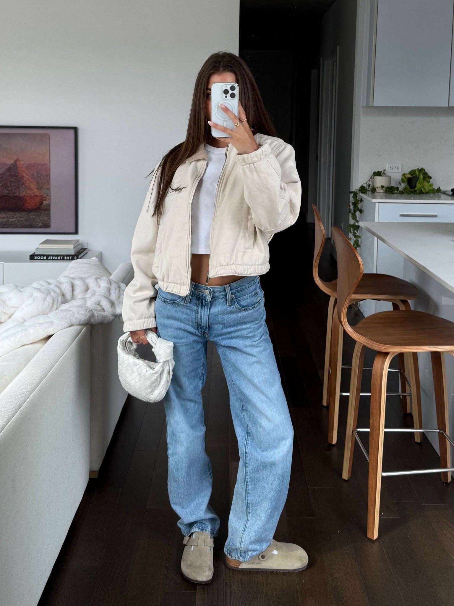 Size up 1-2 sizes in jeans for oversized look!