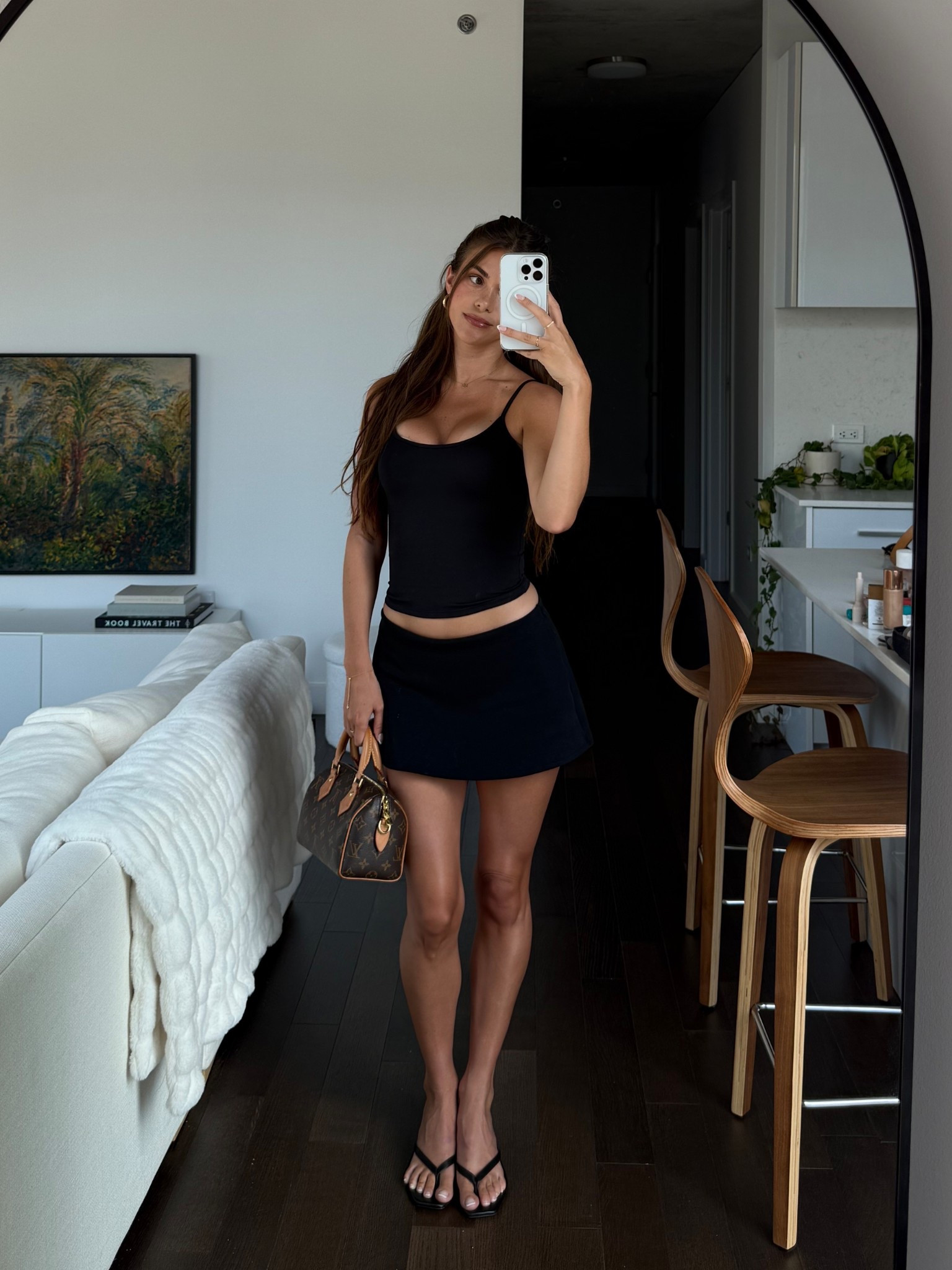 Night out in Las Vegas! Wearing size 2 in top, XS in skort, boots run TTS