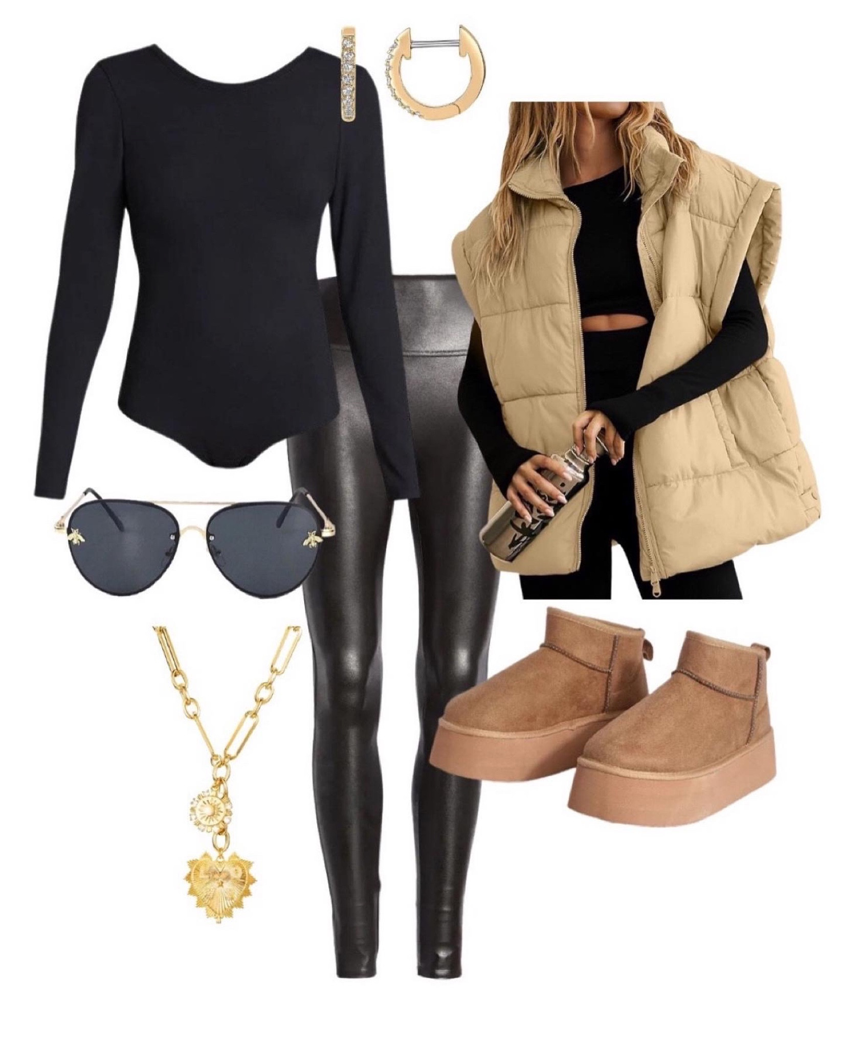 The most comfortable lounge wear set!! Runs tts. Also this long puffer vest is a staple in my closet and so versatile. These ugg inspired boots are a fraction of the cost and so comfortable I highly recommend 💯