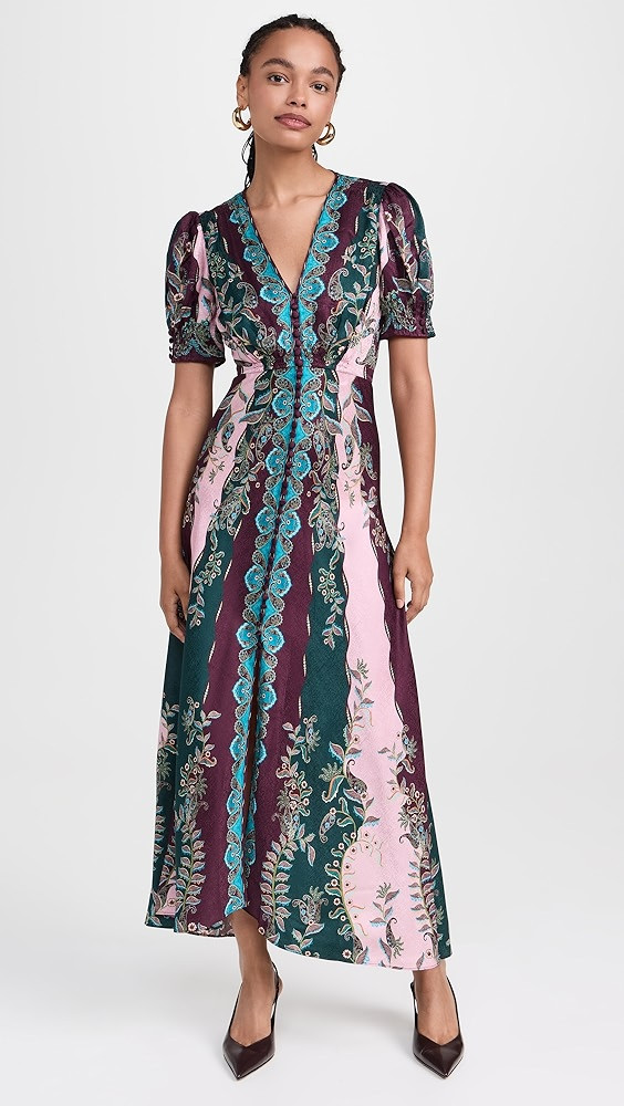 Coraline corded lace-trimmed silk-satin midi dress