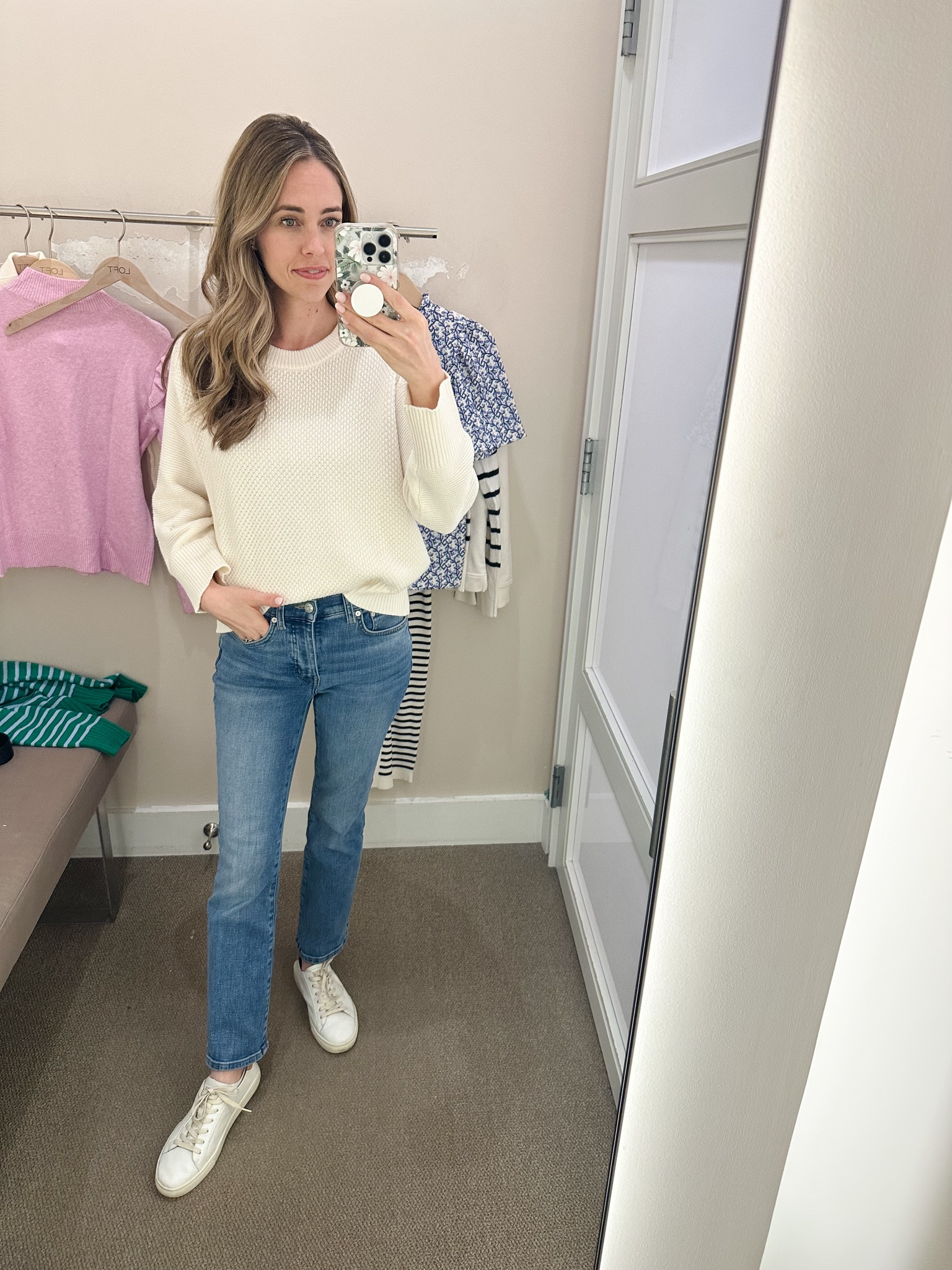 Love this simple sweater. Cute woven texture, can transition from winter to spring so easily!